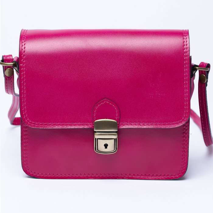 Comandă online o Geanta crossbody din piele naturala, tip postas, fucsia cu livrare rapidă prin curier sau la easybox!