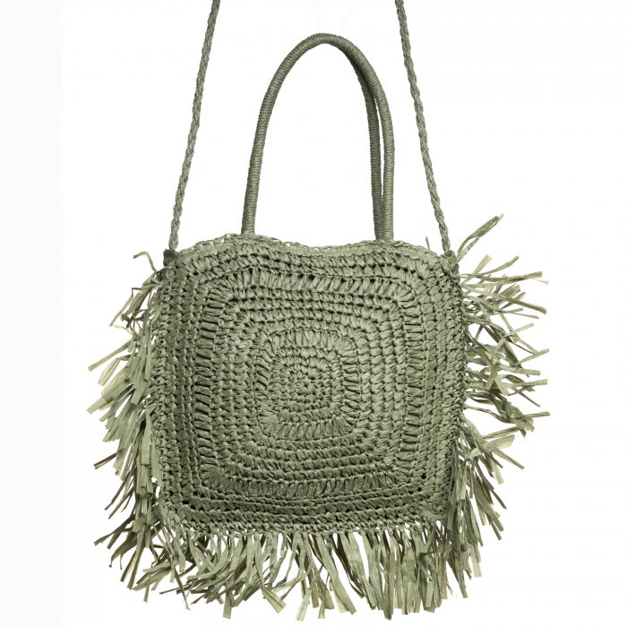Inchidere cu fermoar si captusita la interior cu material textil cu aceeasi nuanta. Bareta de umar impletita 129 cm, manere intarite de pus pe umar, buzunar interior fara fermoar Material : exterior – fibre de hartie, interior – textil Dimensiuni:…