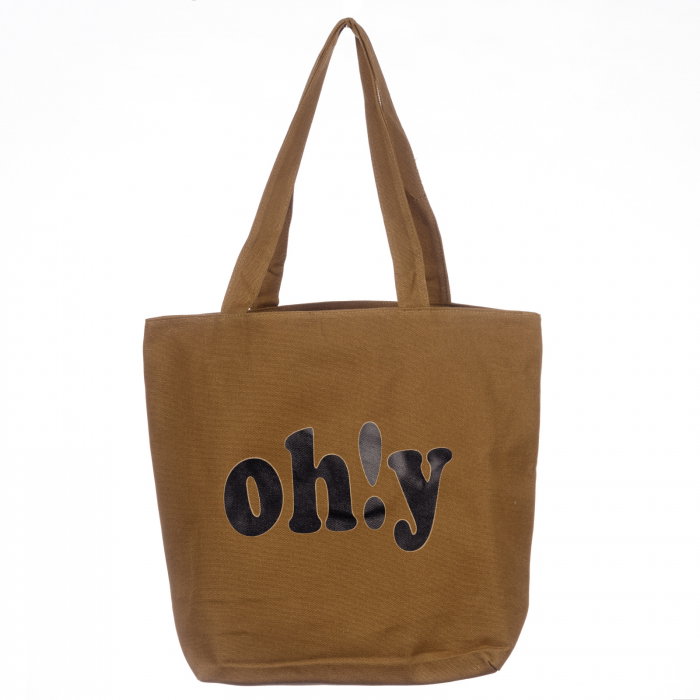 Comandă online o Geanta de umar din bumbac cu fermoar si imprimeu Oh!Y, camel cu livrare rapidă prin curier sau la easybox!