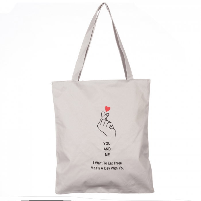 Geanta shopper din material textil, cu imprimeu You and Me