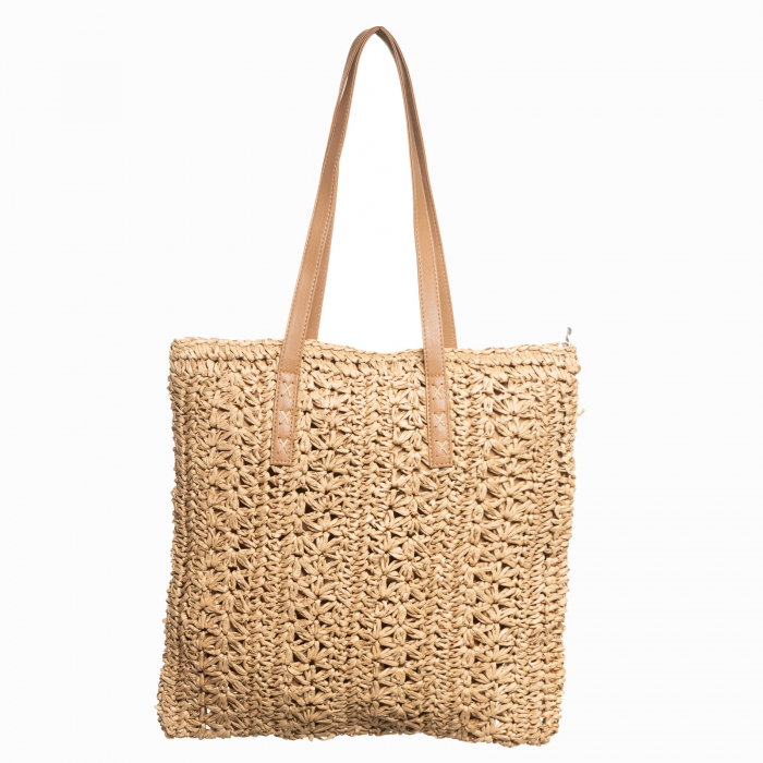 Geanta shopper impletita cu manere din piele ecologica, bej inchis