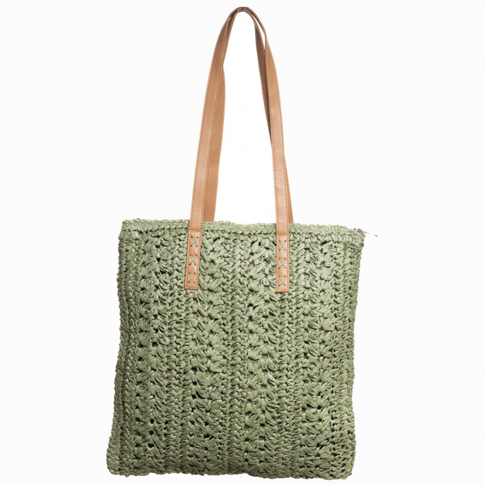 Comandă online o Geanta shopper impletita cu manere din piele ecologica, verde prafuit cu livrare rapidă prin curier sau la easybox!