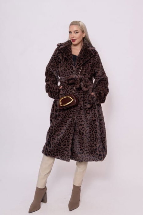 Comandă online o Haina midi din blanita artificiala animal print cu livrare rapidă prin curier sau la easybox!