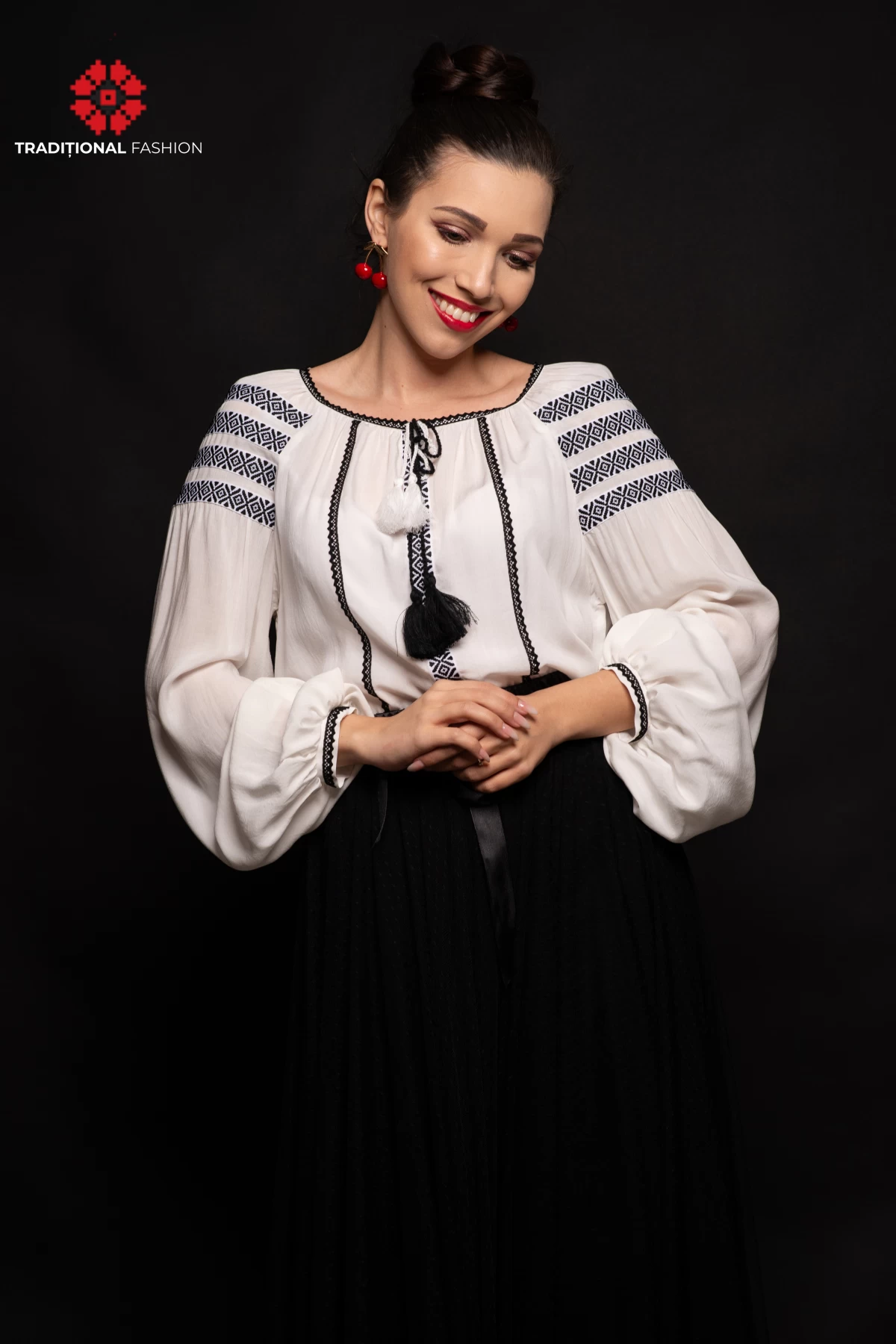 Ie alba din bumbac cu benzi brodate cu motive traditionale Culoare: albCroi: drept lejerDecolteu tip barcutaManeci lungi bufante Benzi aplicate cu broderie neagraMansete inguste decorate cu broderieSnur cu ciucuri la baza gatuluiCompozitie: 80% bumbac 20% poliesterFabricat in Romania* Echipa noastra face toate eforturile in a prezenta cat mai bine culorile produselor prezentate pe site insa culorile pot diferi de situatia reala si pot varia în functie de setarile monitorului/dispozitivului dvs!