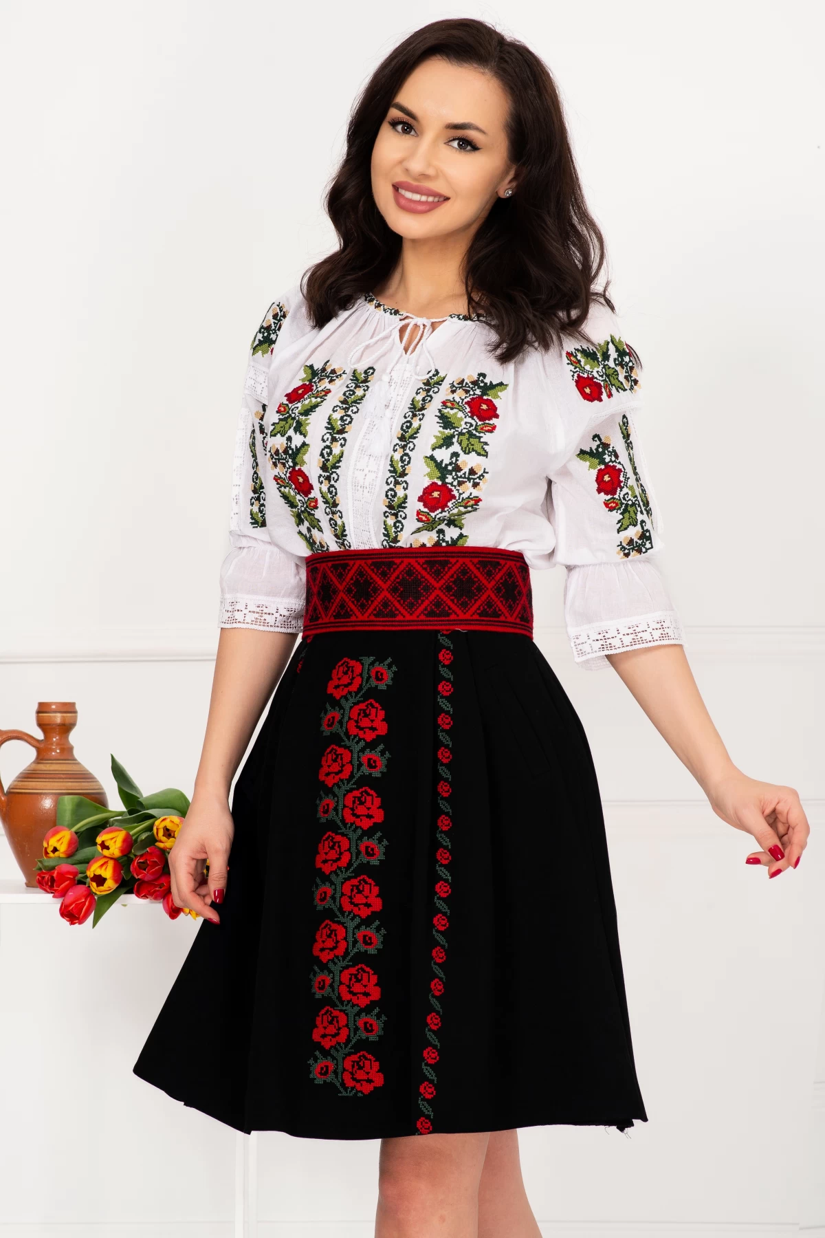 Ie brodata traditionala Tamara cu motivul trandafirului Culoare: albTextura: bumbacManeci trei sferturiDecolteu tip barcuta Inchidere cu snur alb si ciucuriManeci trei sferturiMansete elasticeVolan la terminatia manecii si banda din dantela de bumbacBrodata cu motivul trandafiruluiCompozitie: 100% bumbac* Echipa noastra face toate eforturile in a prezenta cat mai bine culorile produselor prezentate pe site insa culorile pot diferi de situatia reala si pot varia în functie de setarile monitorului/dispozitivului dvs!