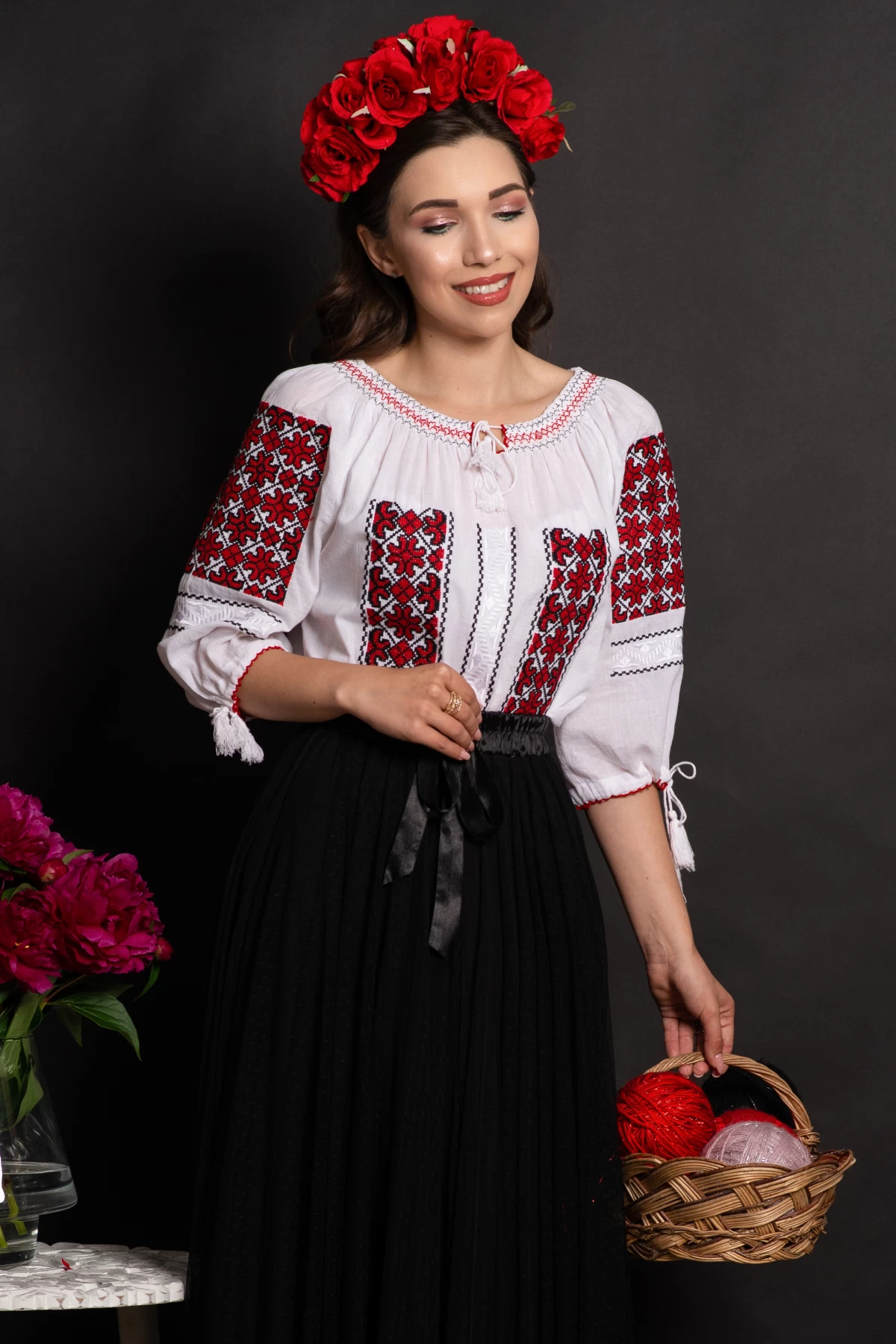 Ie dama traditionala Francisca din bumbac cu broderie rosie Compozitie: 100% bumbac