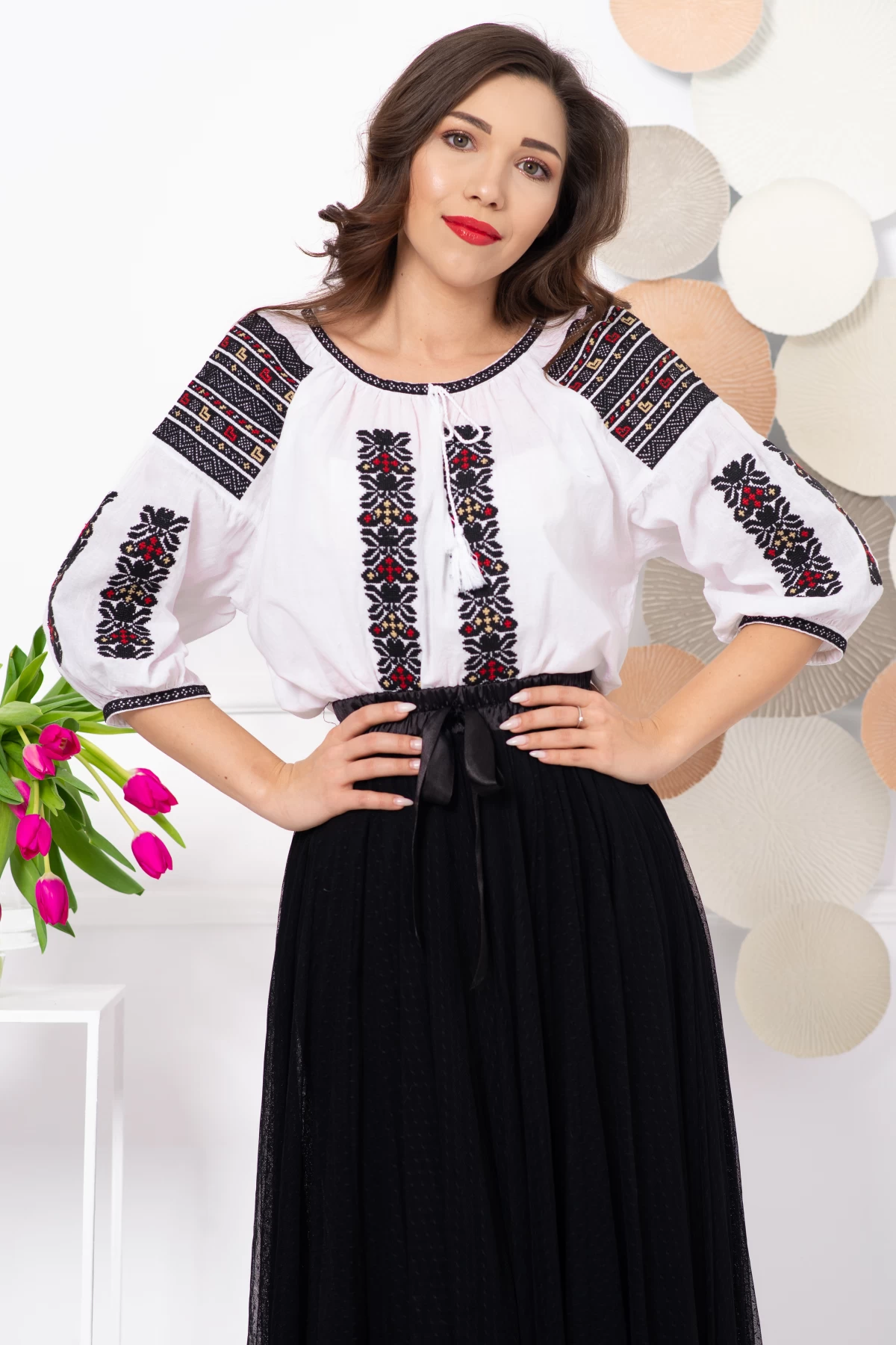 Ie traditionala alba Cecilia cu broderie cu motivul crucii si maneca trei sferturi Culoare: albTextura: bumbacCroi: drept lejerManeci trei sferturiMansete cu broderie traditionala si nastureDecolteu tip barcutaSnur bej decorativ cu ciucuriBroderie traditionala cu motivul cruciiCompozitie: 100% bumbac* Echipa noastra face toate eforturile in a prezenta cat mai bine culorile produselor prezentate pe site insa culorile pot diferi de situatia reala si pot varia în functie de setarile monitorului/dispozitivului dvs!