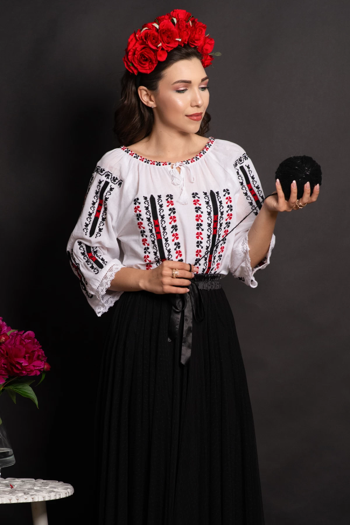 Ie traditionala din bumbac Delfina cu motive populare brodate Compozitie: 100% bumbac