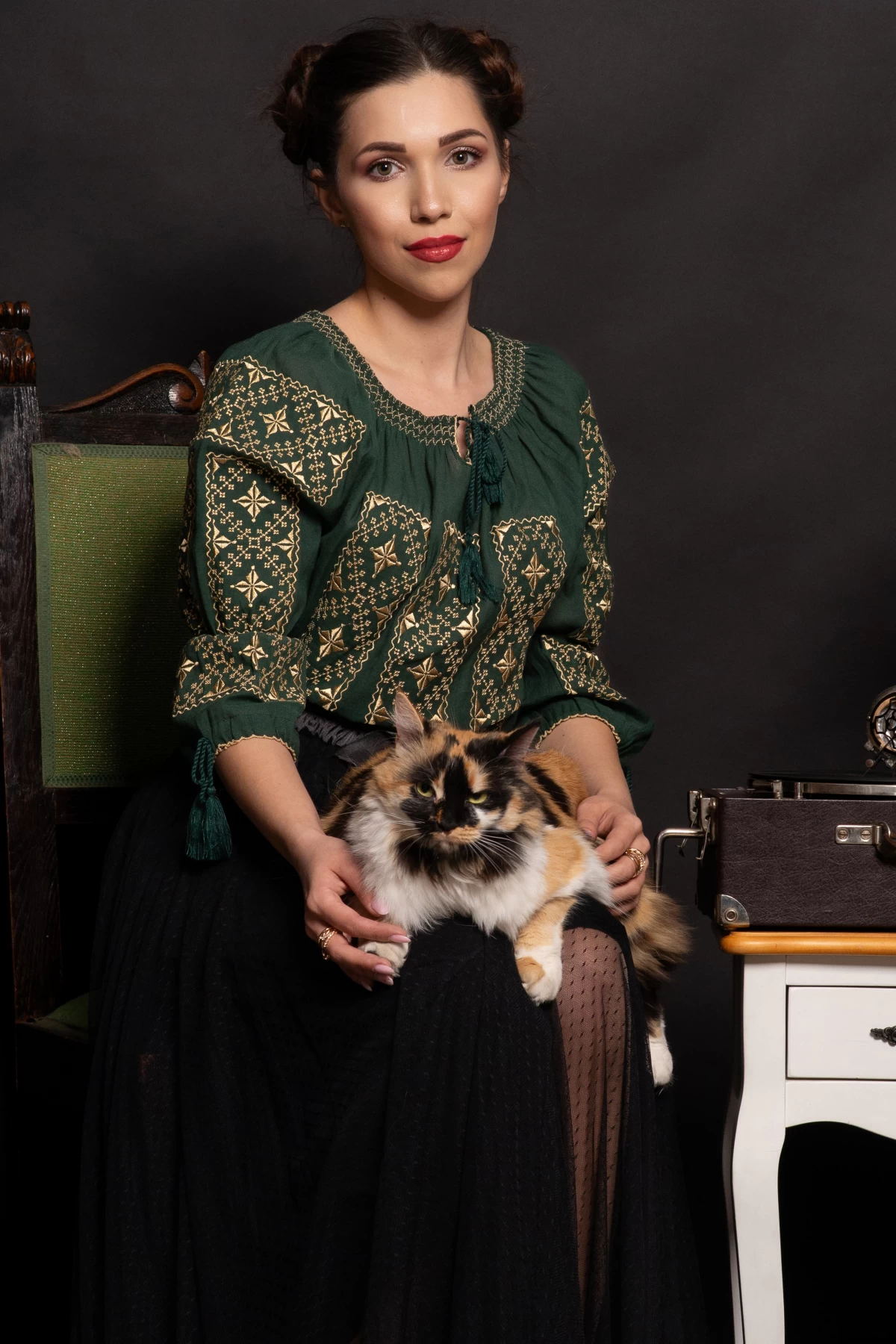 Ie traditionala verde Nadia cu simbolul crucii brodat