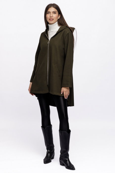 Are gluga si buzunare laterale Pe spate este plisata Se inchide cu fermoar pe fata Nu are captuseala Este mai scurta in fata decat in spate Este talie unica si se potriveste pentru masurile S,M,L,XL Dimensiuni: umeri 43 cm, bust 118 cm, lungime…