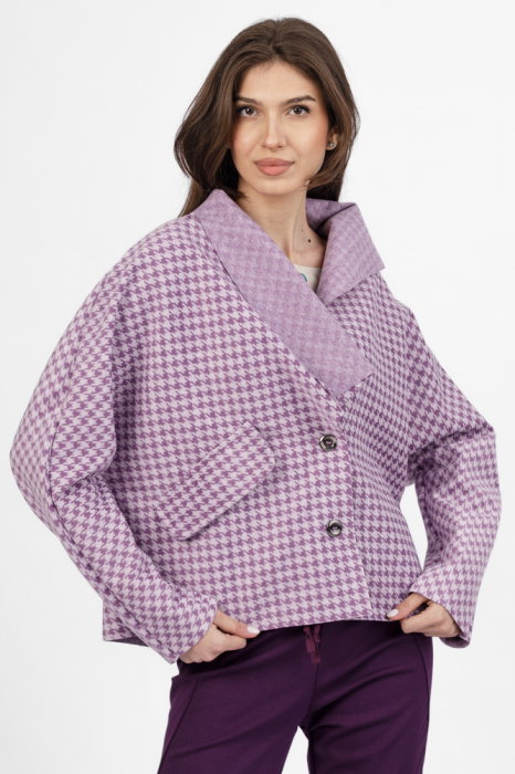 Jacheta scurta, din stofa mov cu imprimeu picior de cocos