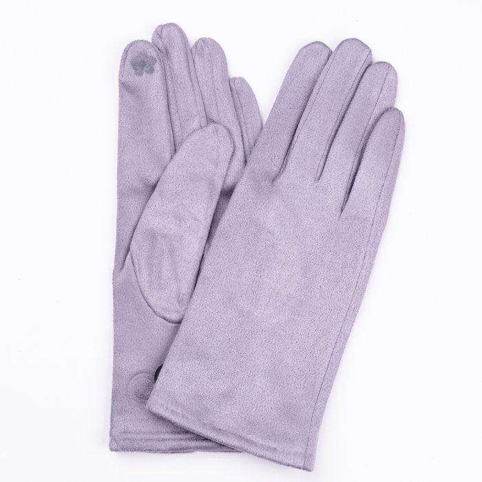 Manusi dama gri deschis din material textil catifelatat