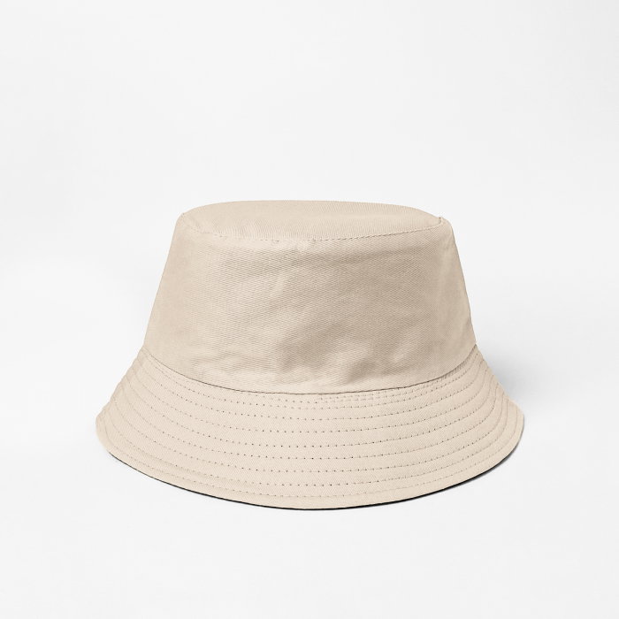 Palarie tip bucket unisex cu doua fete, bej deschis si negru, din bumbac