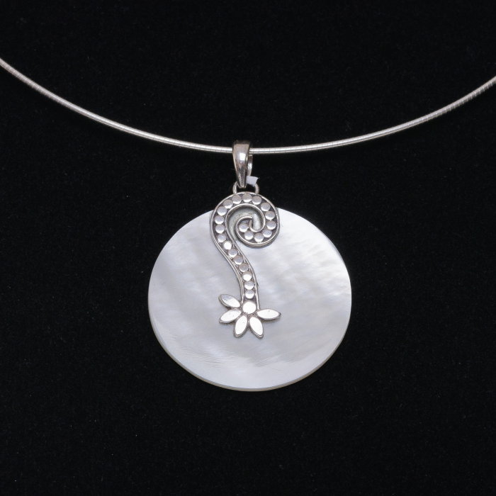 Comandă online o Pandant rotund 3 cm cu scoica naturala si decoratiune din argint 925 cu livrare rapidă prin curier sau la easybox!