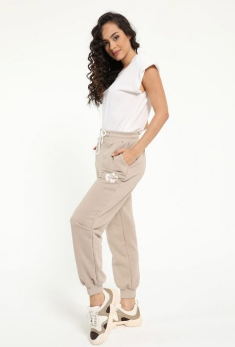 Pantalonii au o banda lata de elastic in talie si siret pentru reglare Au la baza banda elastica Au buzunare laterale Material: bumbac Descriere dimensiuni: S: talie 72 cm, sold 106 cm, lungime 92 cm M: talie 75 cm, sold…