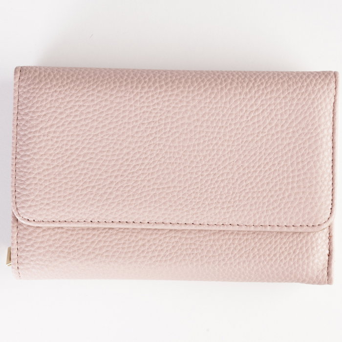 Portofel din piele naturala, cu capsa, roz