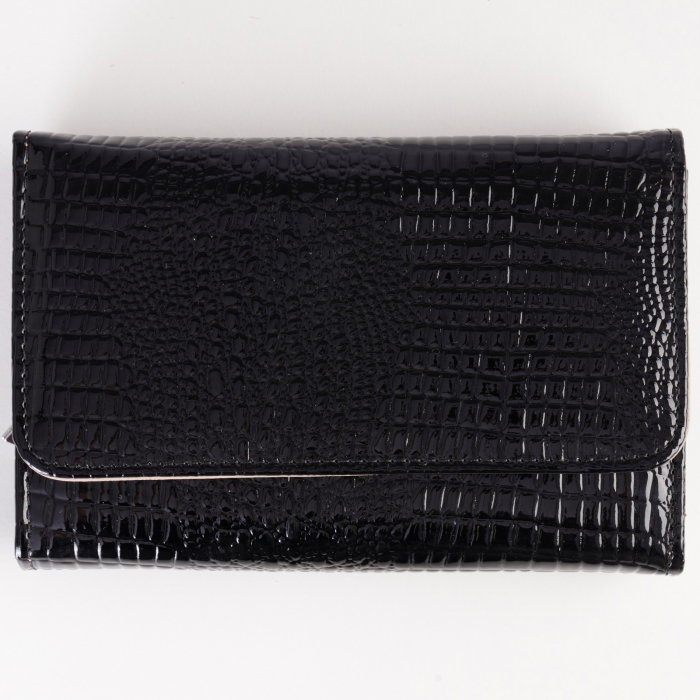 Comandă online o Portofel din piele naturala lucioasa, cu aspect piele de sarpe si capse interioare, negru cu livrare rapidă prin curier sau la easybox!