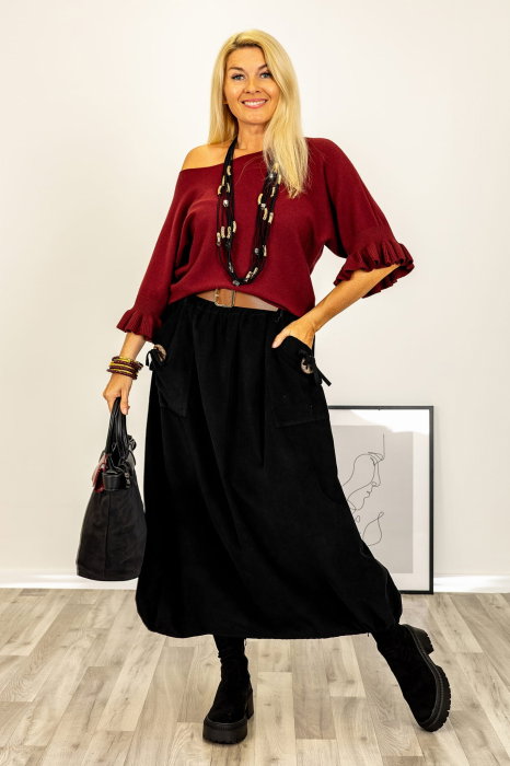 Comandă online o Pulover cu maneci scurte si volane la mansete din vascoza, bordo cu livrare rapidă prin curier sau la easybox!
