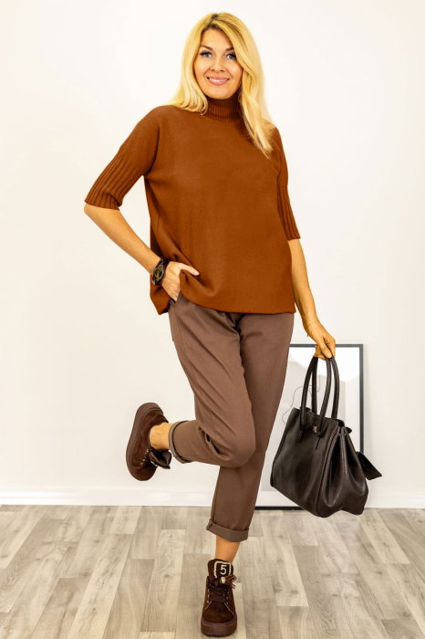Comandă online o Pulover versatil cu maneci scurte ribbed si guler inalt, din vascoza, maro roscat cu livrare rapidă prin curier sau la easybox!