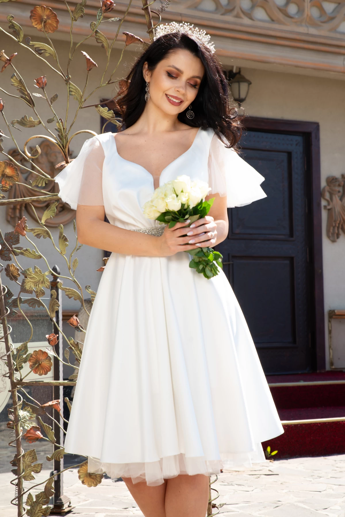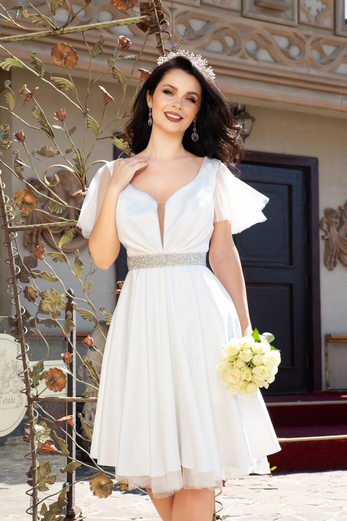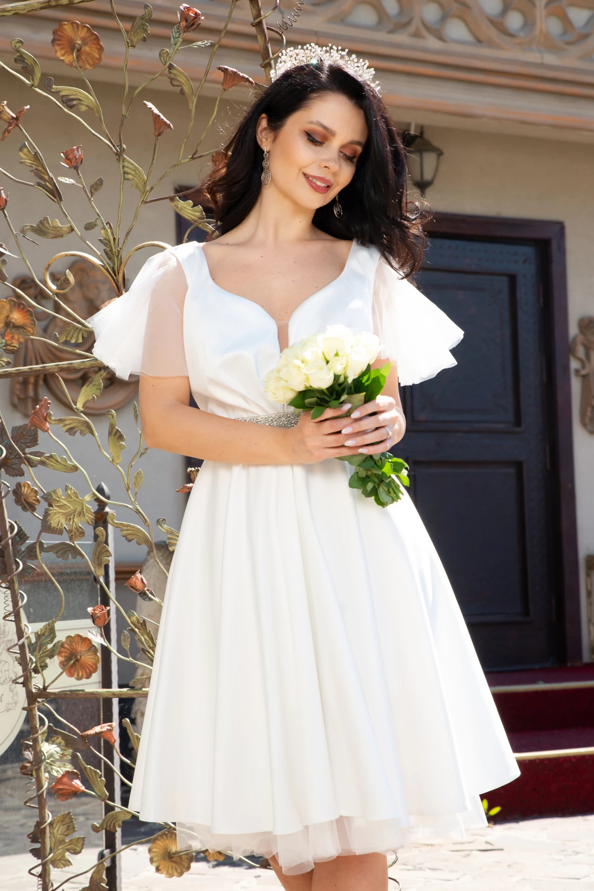 Rochie alba de cununie Argentina in clos cu volane din tulle