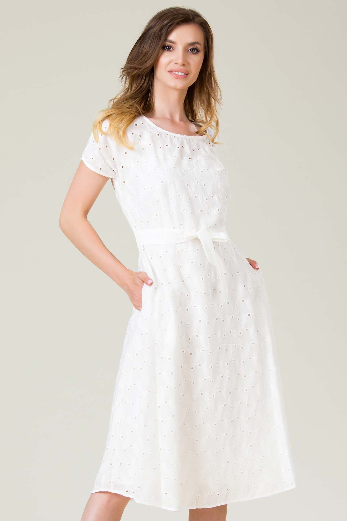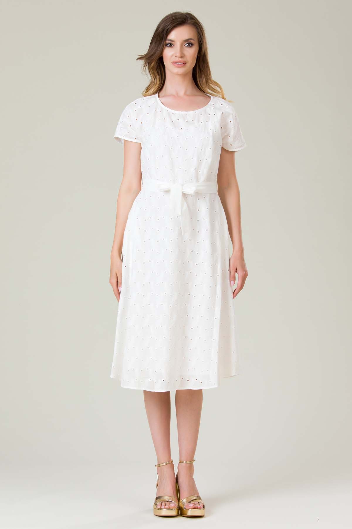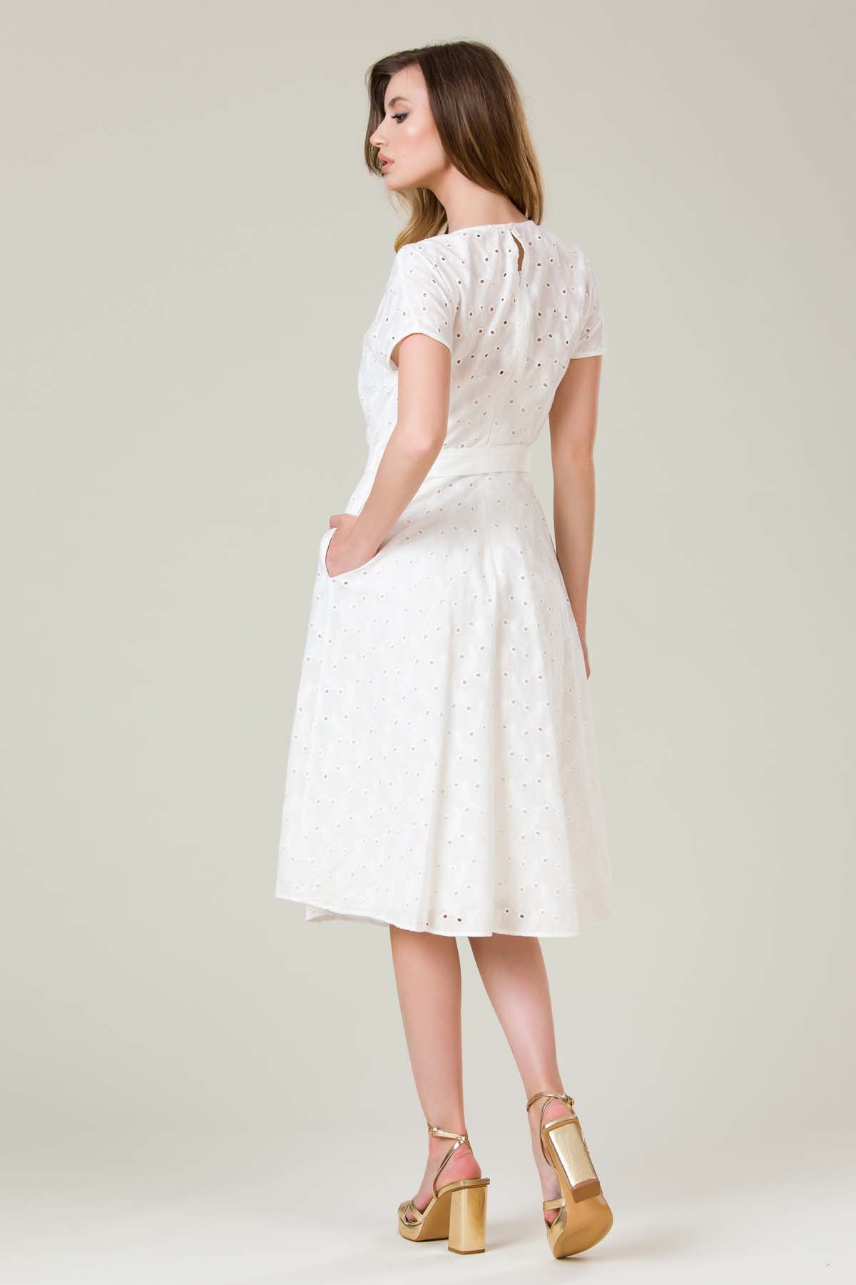 Rochie Amy din voal de bumbac brodat si captuseala din batist , croi cu buzunare si cordon in talie.