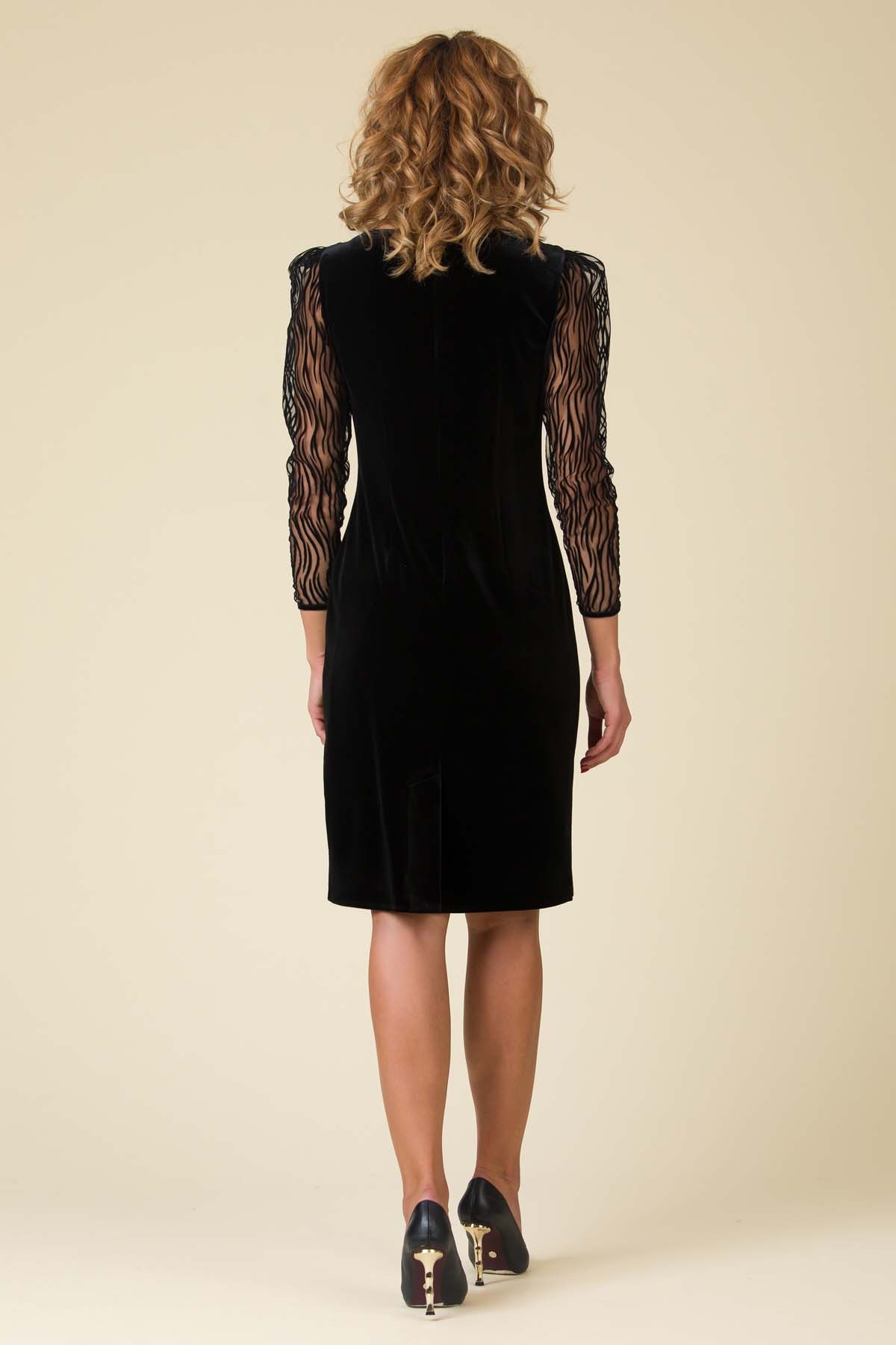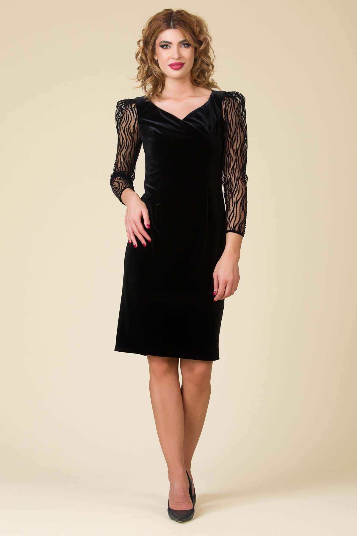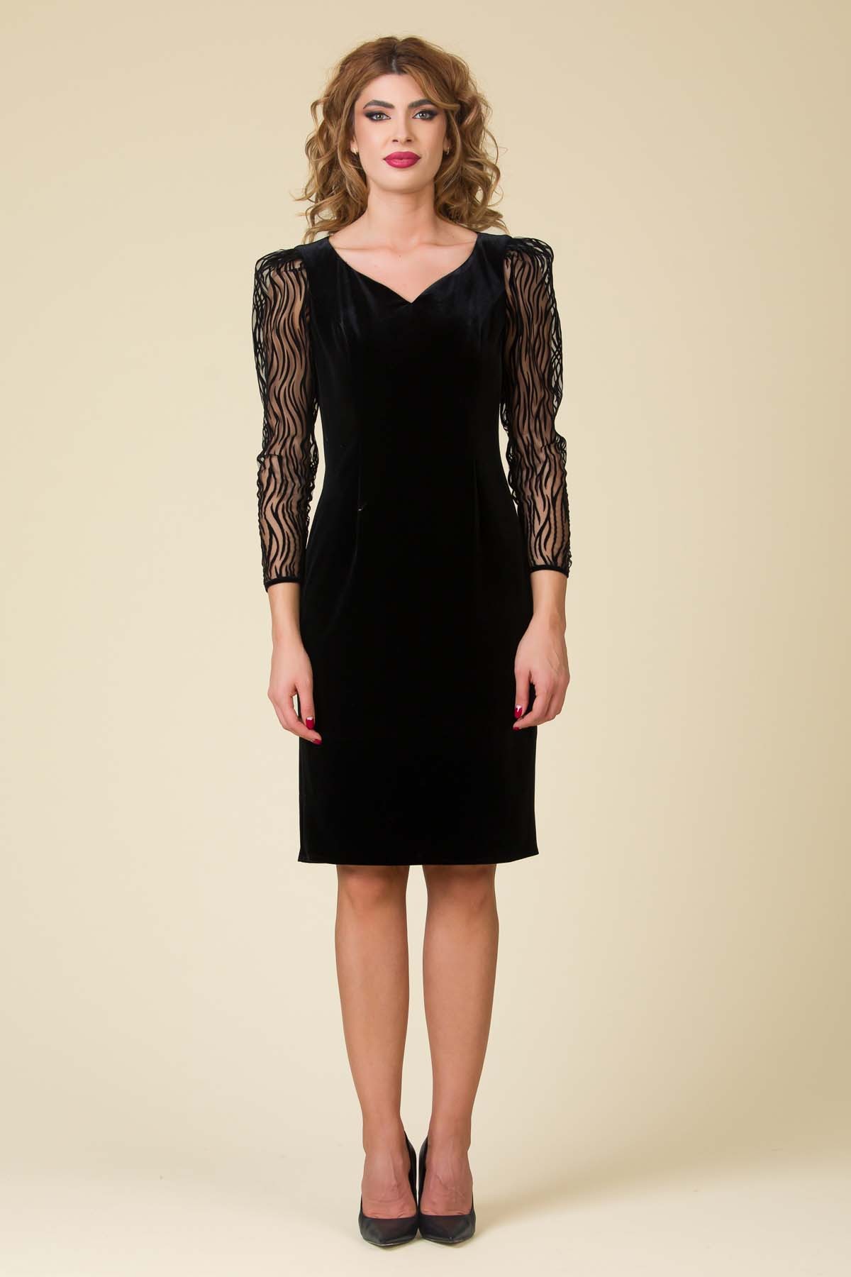 Rochie catifea Lady, croi chic cu maneci din tul si decolteu inima.
