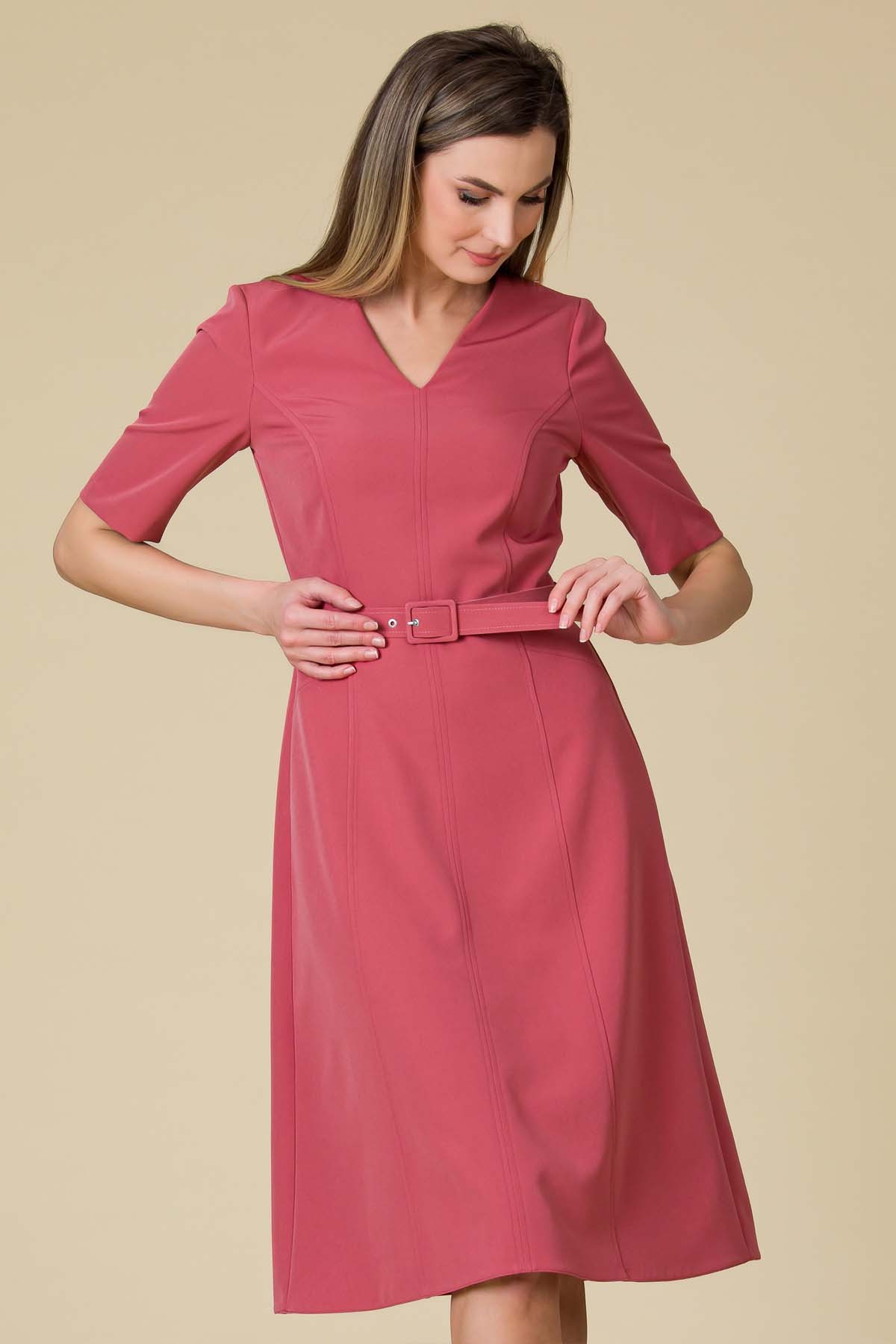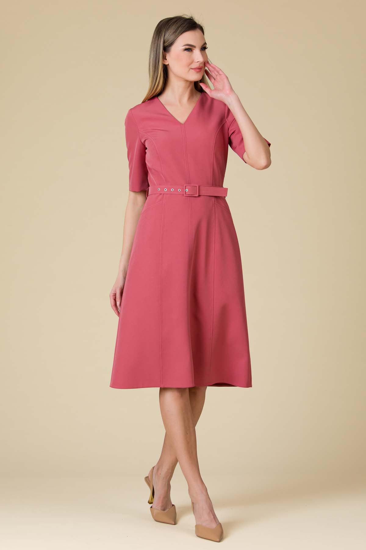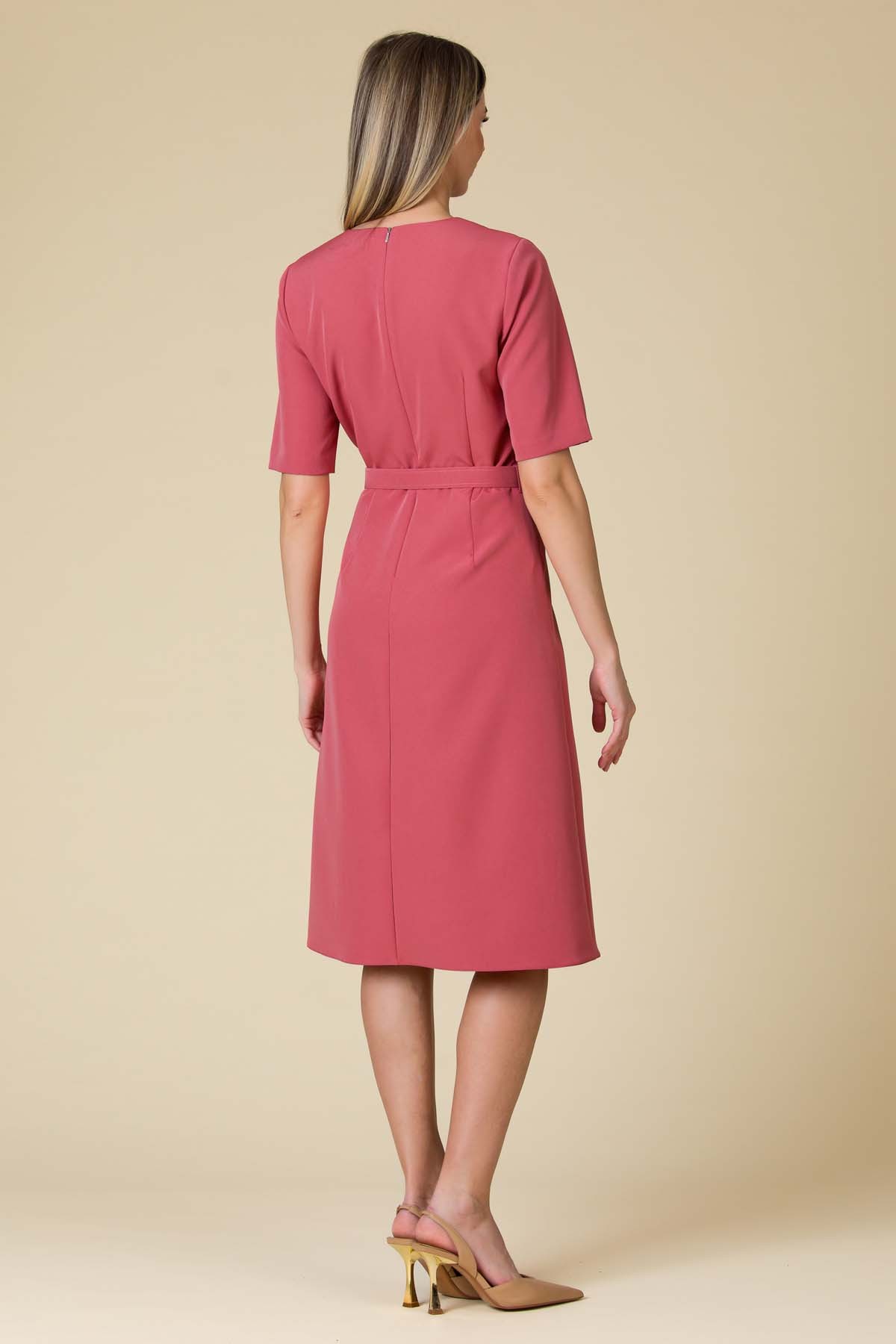 Rochie Juliet din crep, croi in clini tigheliti si curea imbracata in talie.
