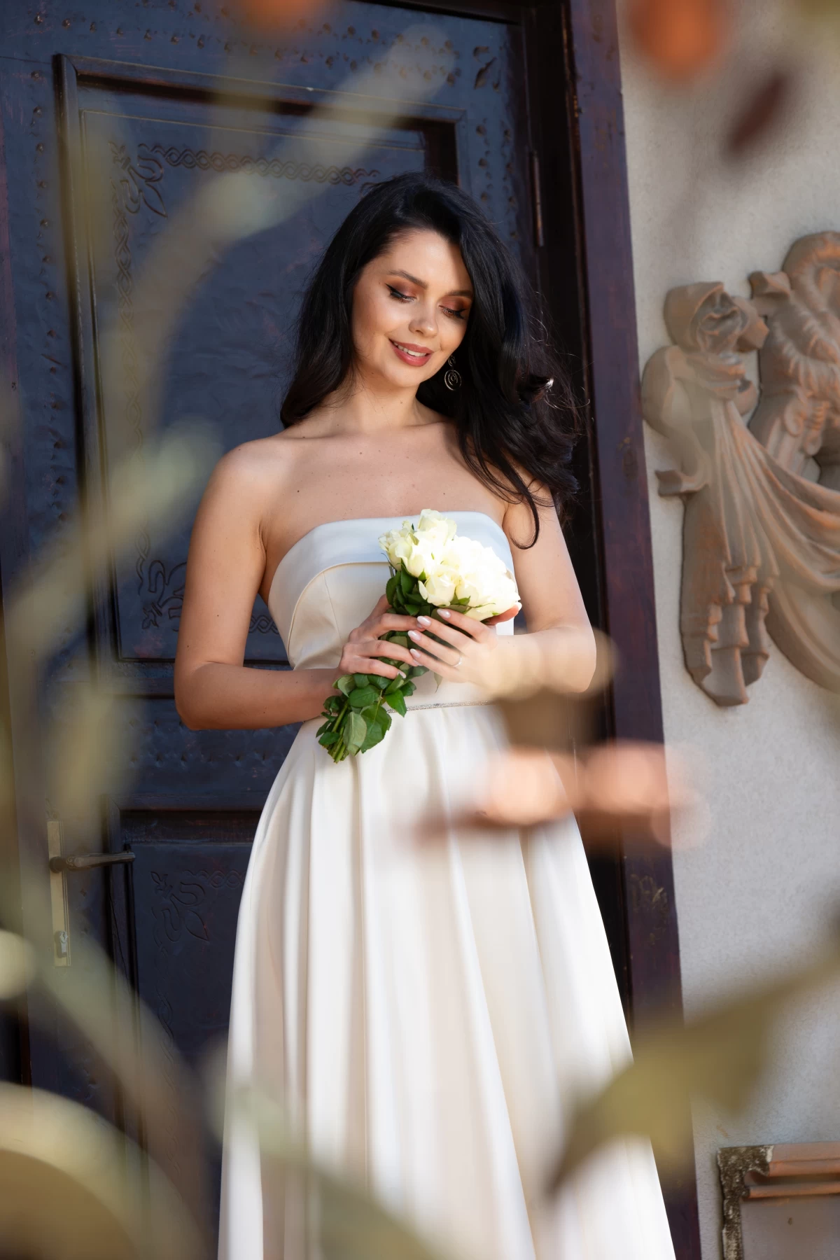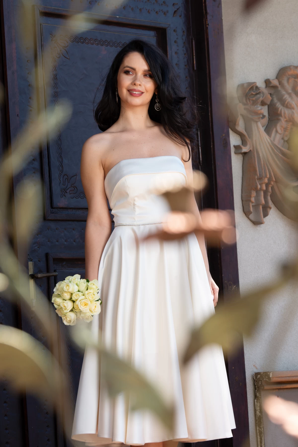 Rochie de cununie butter Nancy in clos cu strassuri in talie