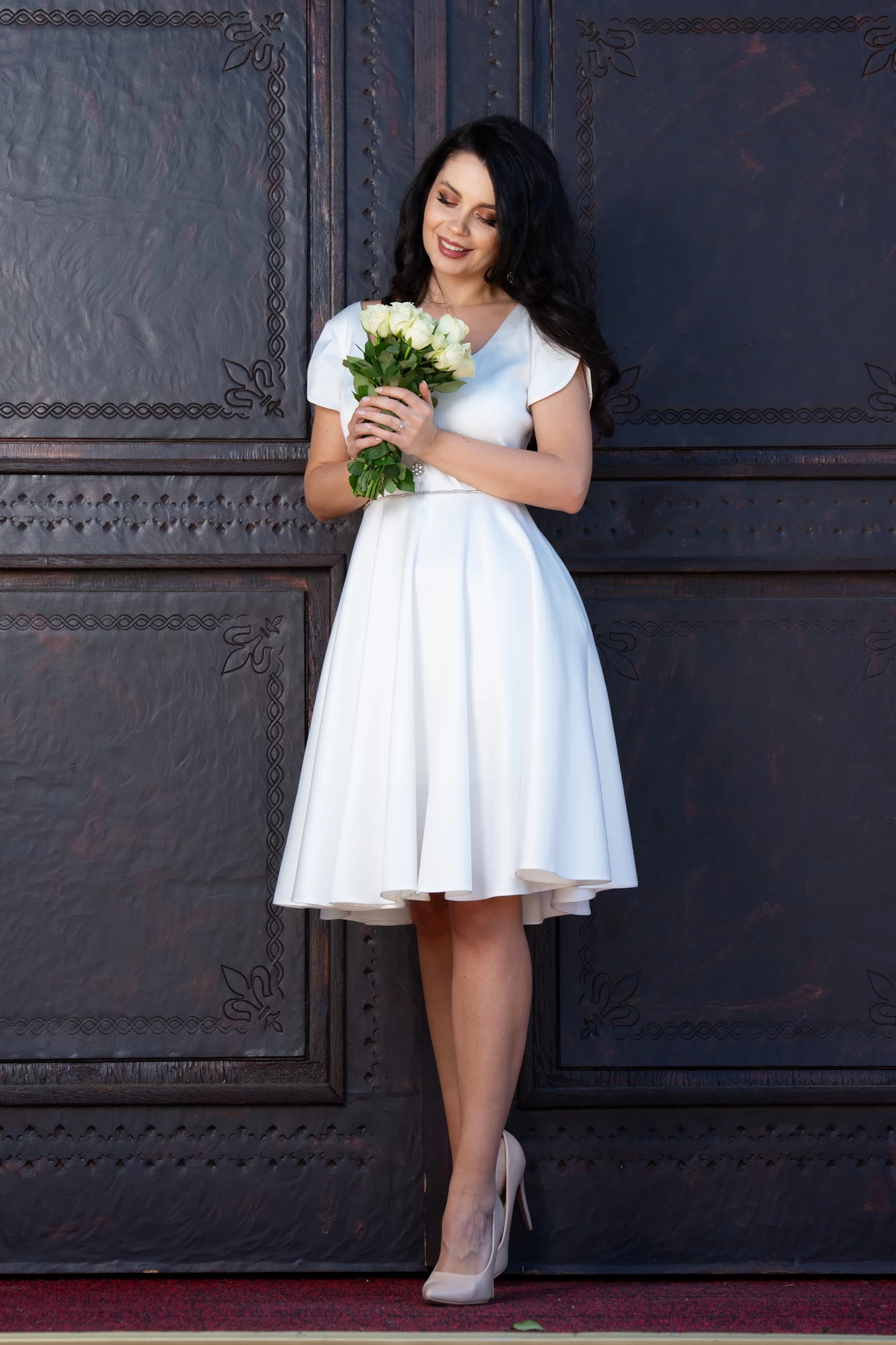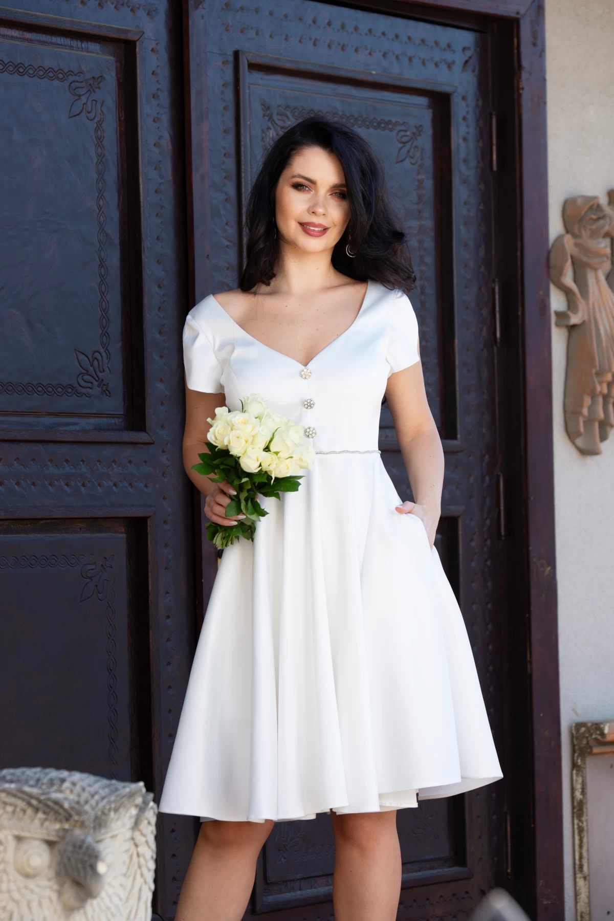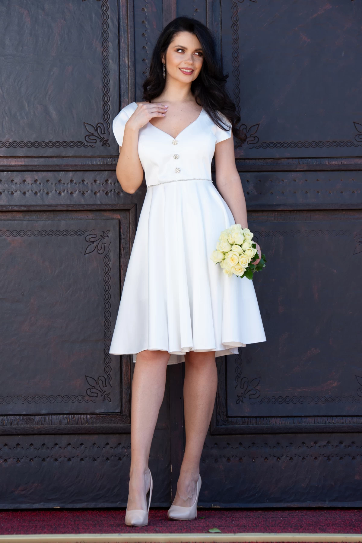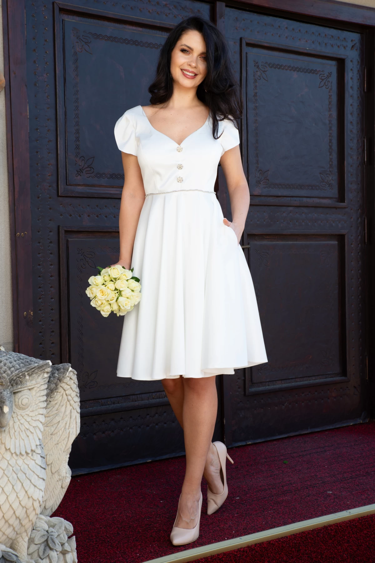 Rochie de cununie Havanna ecru cu maneci tip lalea si nasturi pretiosi