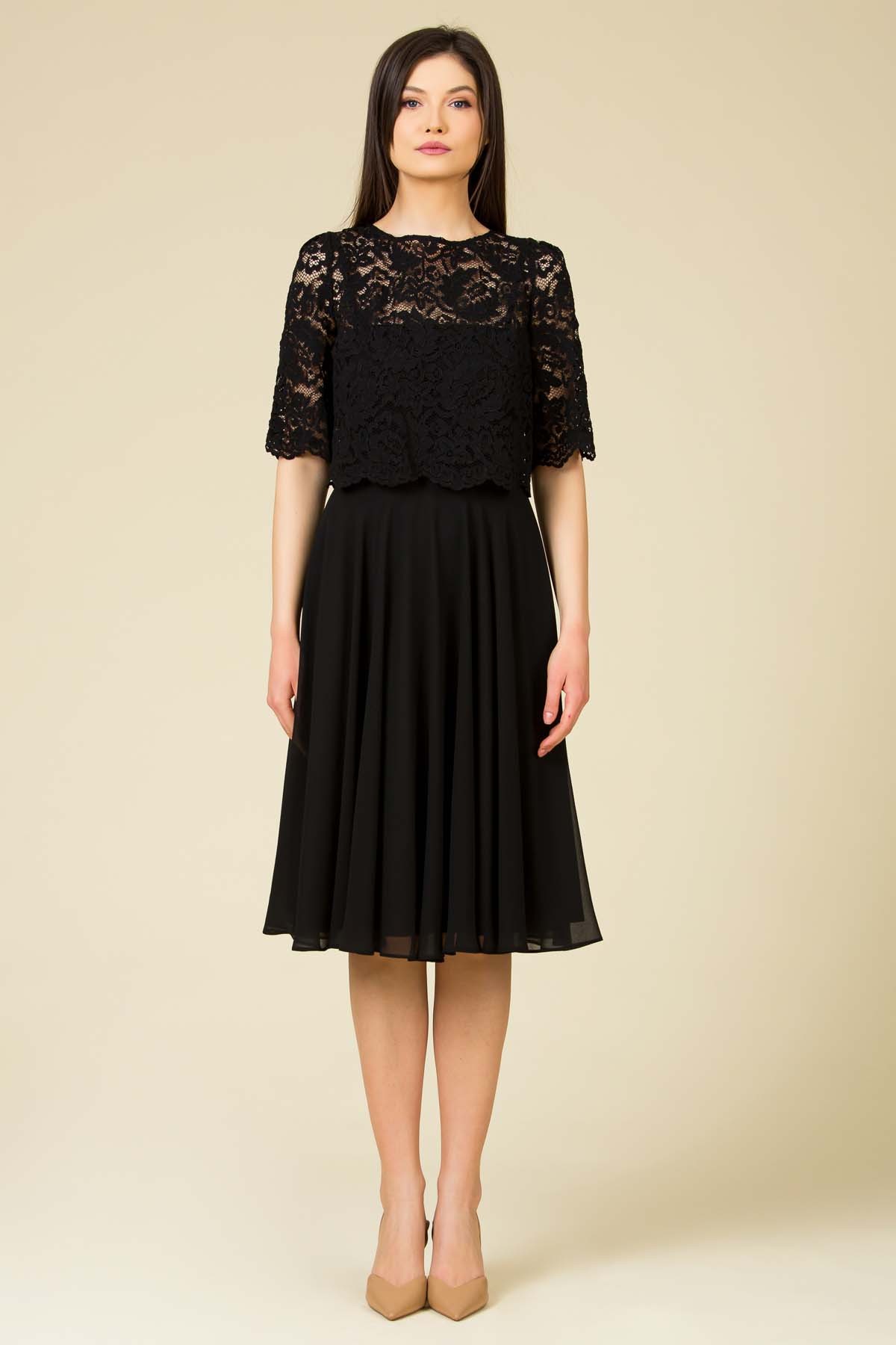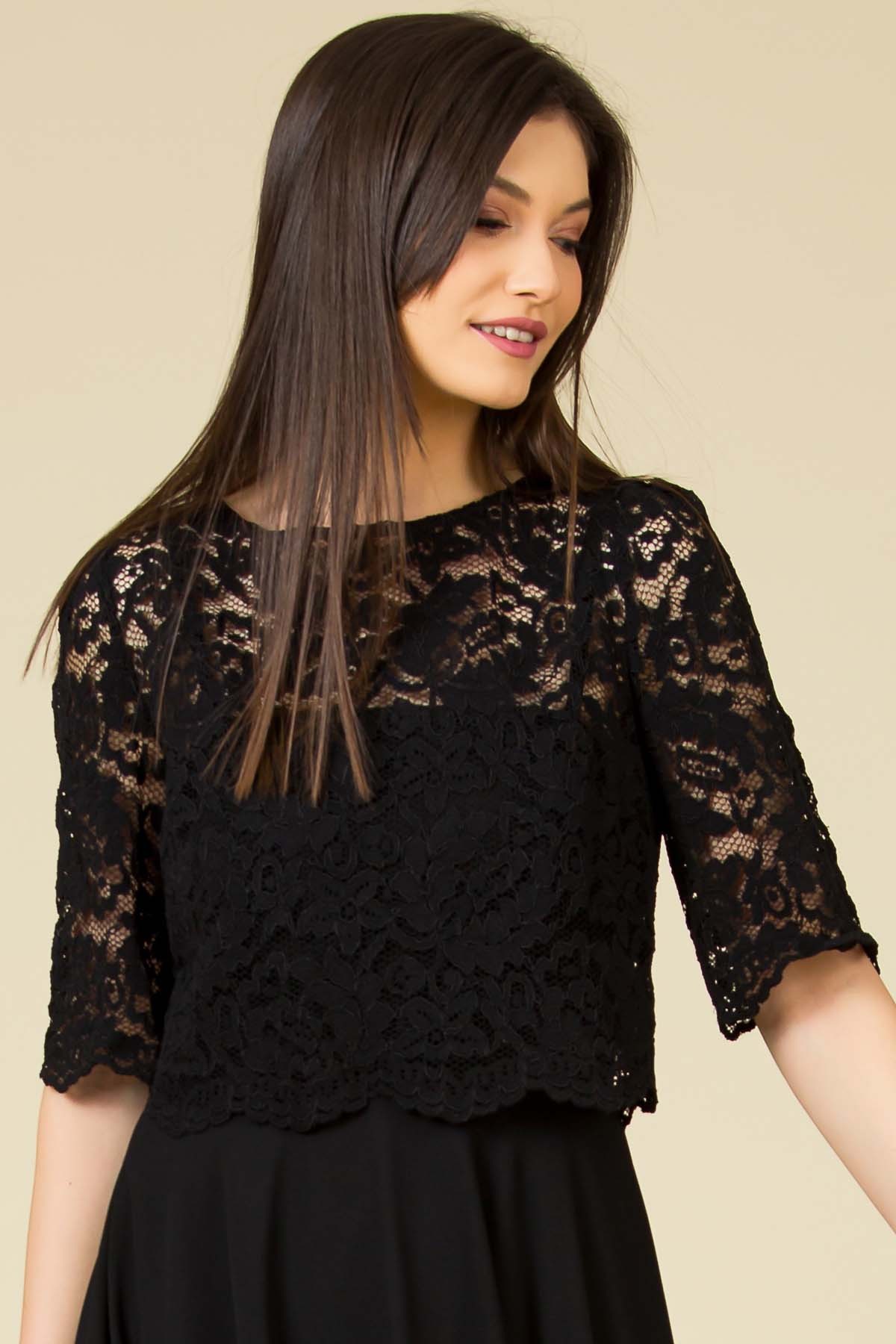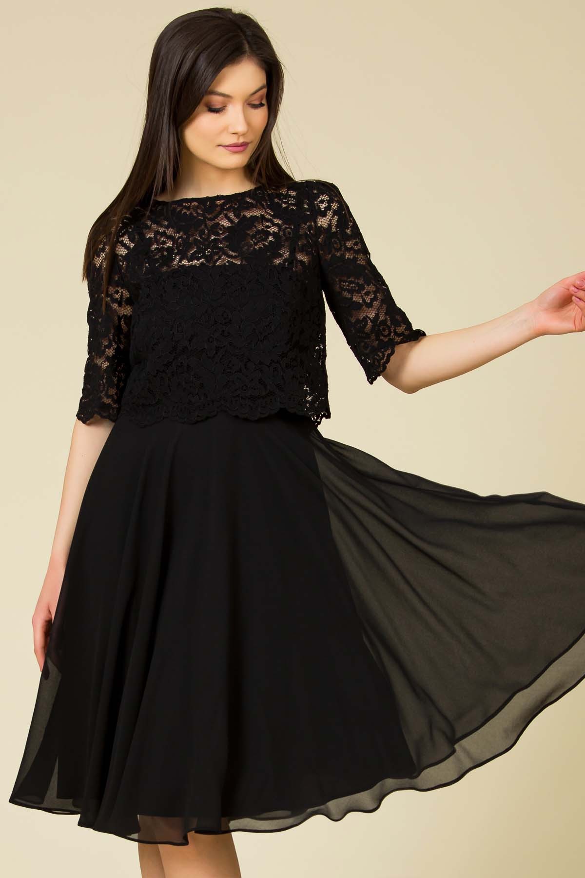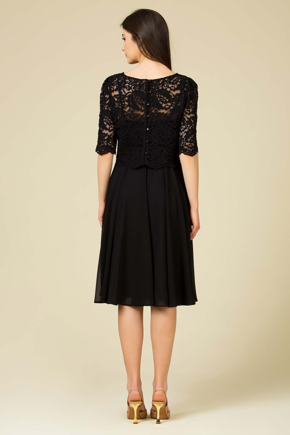 Rochie de ocazie Amelia din voal cu bolerou din dantela, inchis la spate cu nastrei imbracati.