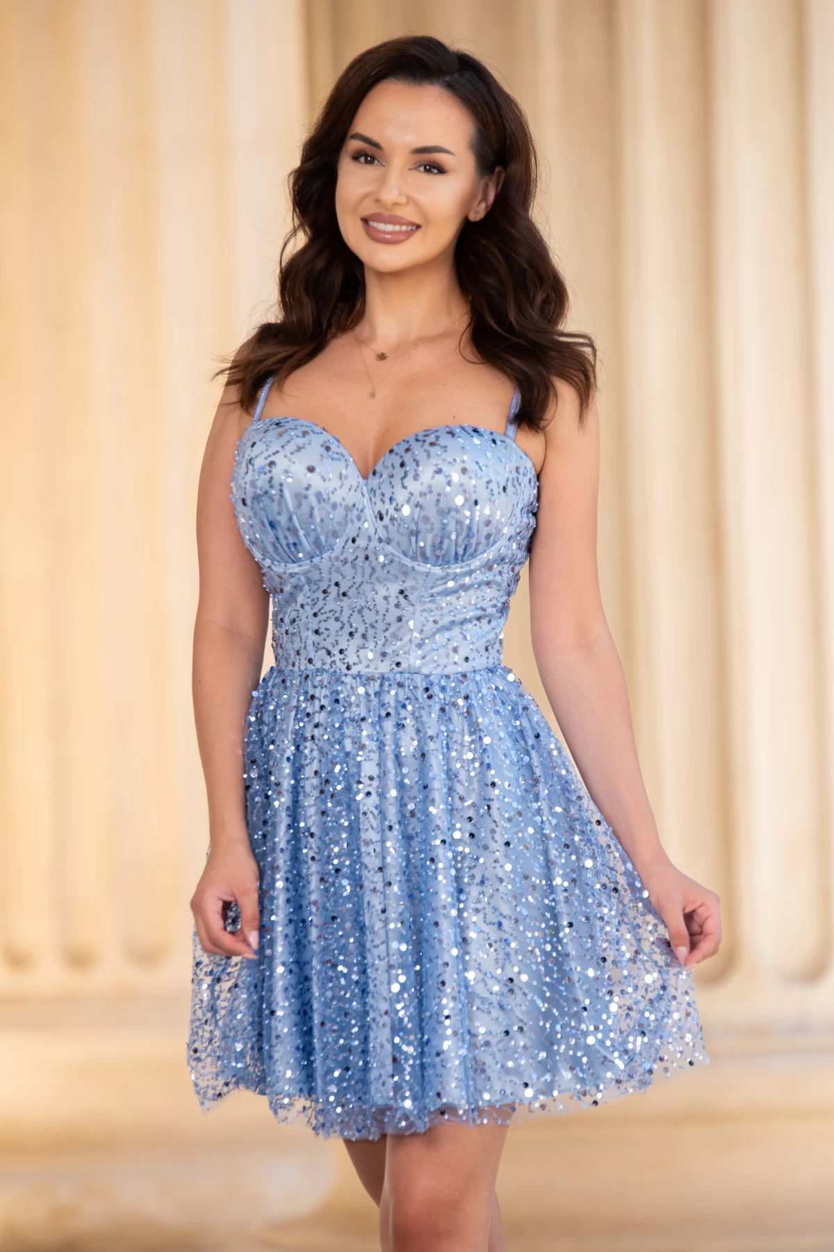 Rochie de ocazie mini bleu in clos decorata cu paiete Culoare: bleuCroi: closTexura: tulle paieteDecolteu tip inimaCupe buretate cu push-up Bretele reglabile pe umeriPrezinta dubluraAcoperita cu tulle paiete si margele pe toata suprafataInchidere cu fermoar la spateCompozitie: 95% poliester 5% elastanFabricat in Romania* Echipa noastra face toate eforturile in a prezenta cat mai bine culorile produselor prezentate pe site insa culorile pot diferi de situatia reala si pot varia în functie de setarile monitorului/dispozitivului dvs!