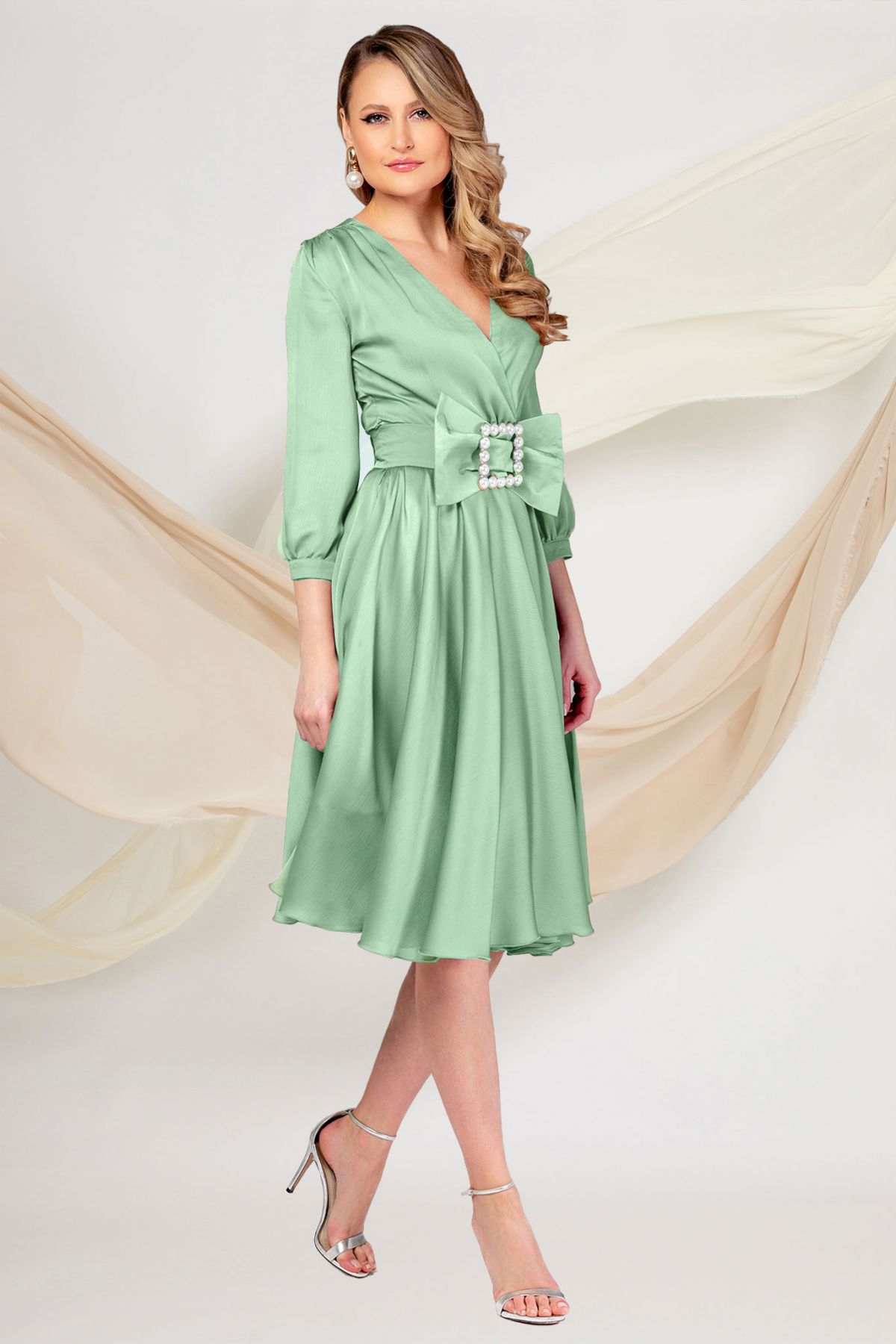 Rochie de ocazie Pretty Girl mint in clos cu cordon detasabil tip funda ; Rochie de ocazie în clos ; Culoare: mint ; Decolteu petrecut în V ; Mâneca trei sferturi ; Manseta îngusta cu un nasture tip perla ; Cordon detasabil tip funda ; Lungime medie ; Dublata pe interior ; Țesatura: voal plisat ; Închidere cu fermoar ascuns la spate ; Lungime produs din mijloc umar pâna în tiv: 103 cm pentru marimea 36 ; Compozitie: 100% poliester; 98%poliester 2% elastan ; * Echipa InPuff face toate eforturile in a prezenta cat mai bine culorile produselor prezentate pe site insa culorile pot diferi de situatia reala si pot varia în functie de setarile monitorului/dispozitivului dvs!