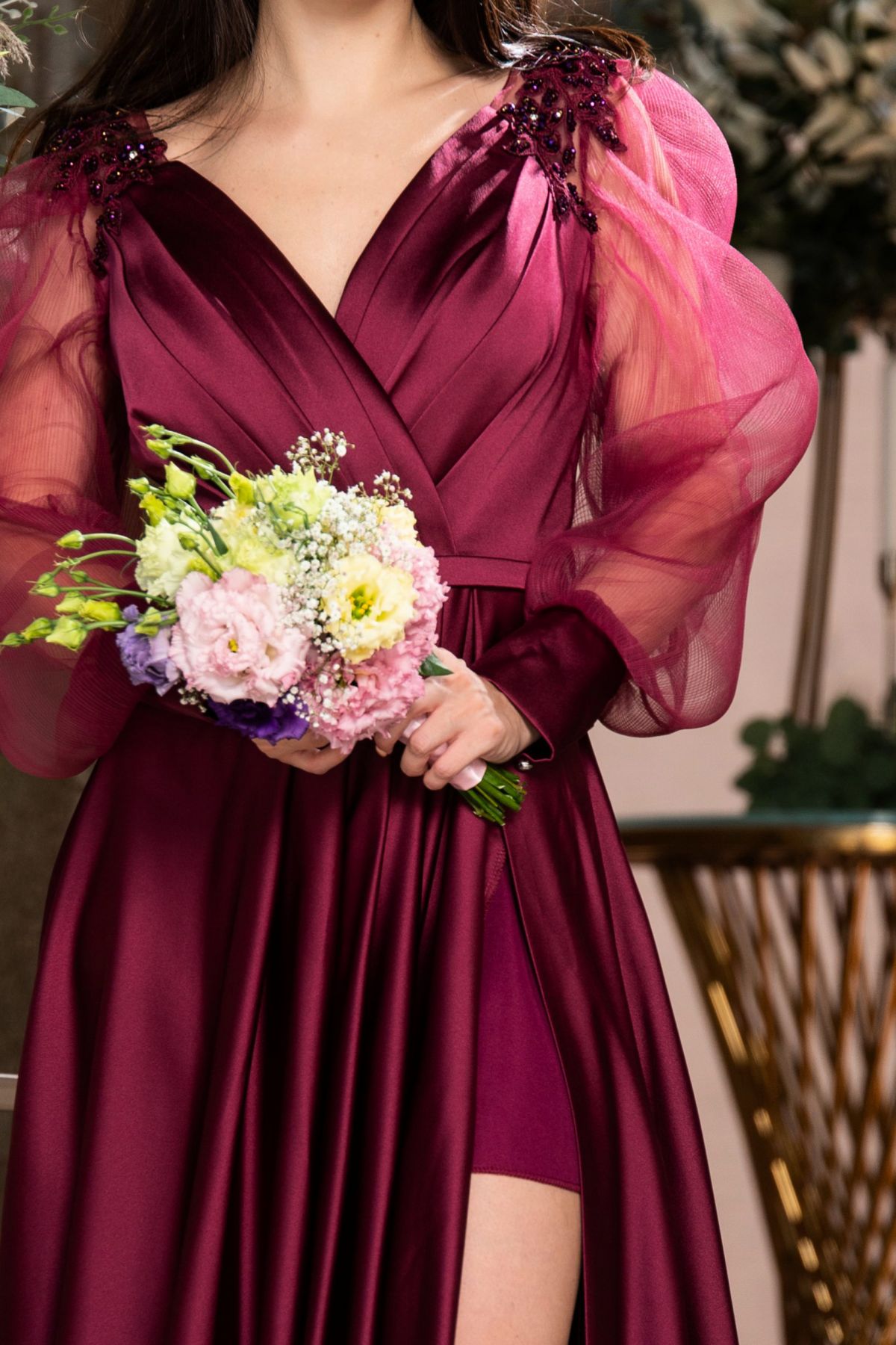 Rochie de seara Eliana magenta satinata cu aplicatii pretioase ; Culoare: magenta ; Croi: printesa ; Textura: satin ; Decolteu tip inima ; Prezinta dublura ; Rejansa in partea de jos ; Crapatura ampla pe picior ; Mansete late cu 3 nasturi ; Inchidere cu fermoar la spate ; Pliseuri ample in zona bustului ; Maneci lungi din tulle ; Decoratiuni pretioase pe umeri din margele strassuri si broderie ; Curea detasabila in talie ; Bretele trasparente pentru stabilitate ; Compozitie: 96% poliester 4% licra ; * Echipa noastra face toate eforturile in a prezenta cat mai bine culorile produselor prezentate pe site insa culorile pot diferi de situatia reala si pot varia în functie de setarile monitorului/dispozitivului dvs!