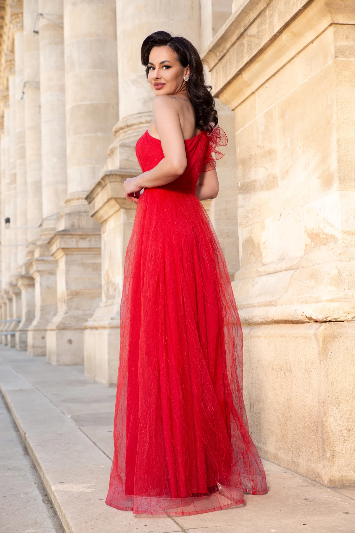 ;strong>Rochie de seara rosie lunga Clio din tulle brodat cu floare 3D pe umar strong> Pentru un look desavarsit la evenimentele speciale din viata ta rochia Clio este alegerea perfecta! Melanjul dintre materialul vaporos glitterul discret croiul flatant pentru orice silueta si eleganta adusa de floarea 3D aplicata pe umar fac din aceasta piesa un must-have. ; Culoare: rosu ; Croi: clos printesa ; Textura: tulle brodat ; Decolteu asimetric ; Un umar gol ; Floare 3D lucrata manual aplicata elegant pe umar ; Talie marcata cu banda lata pentru a pune in evidenta talia ; Prezinta dublura ; Crapatura ampla pe picior ; Inchidere cu fermoar la spate ; Glitter argintiu discret pe toata suprafata ; Rijelina in partea de jos ; Compozitie: 95% poliester 5% lycra ; * Echipa noastra face toate eforturile in a prezenta cat mai bine culorile produselor prezentate pe site insa culorile pot diferi de situatia reala si pot varia în functie de setarile monitorului/dispozitivului dvs!