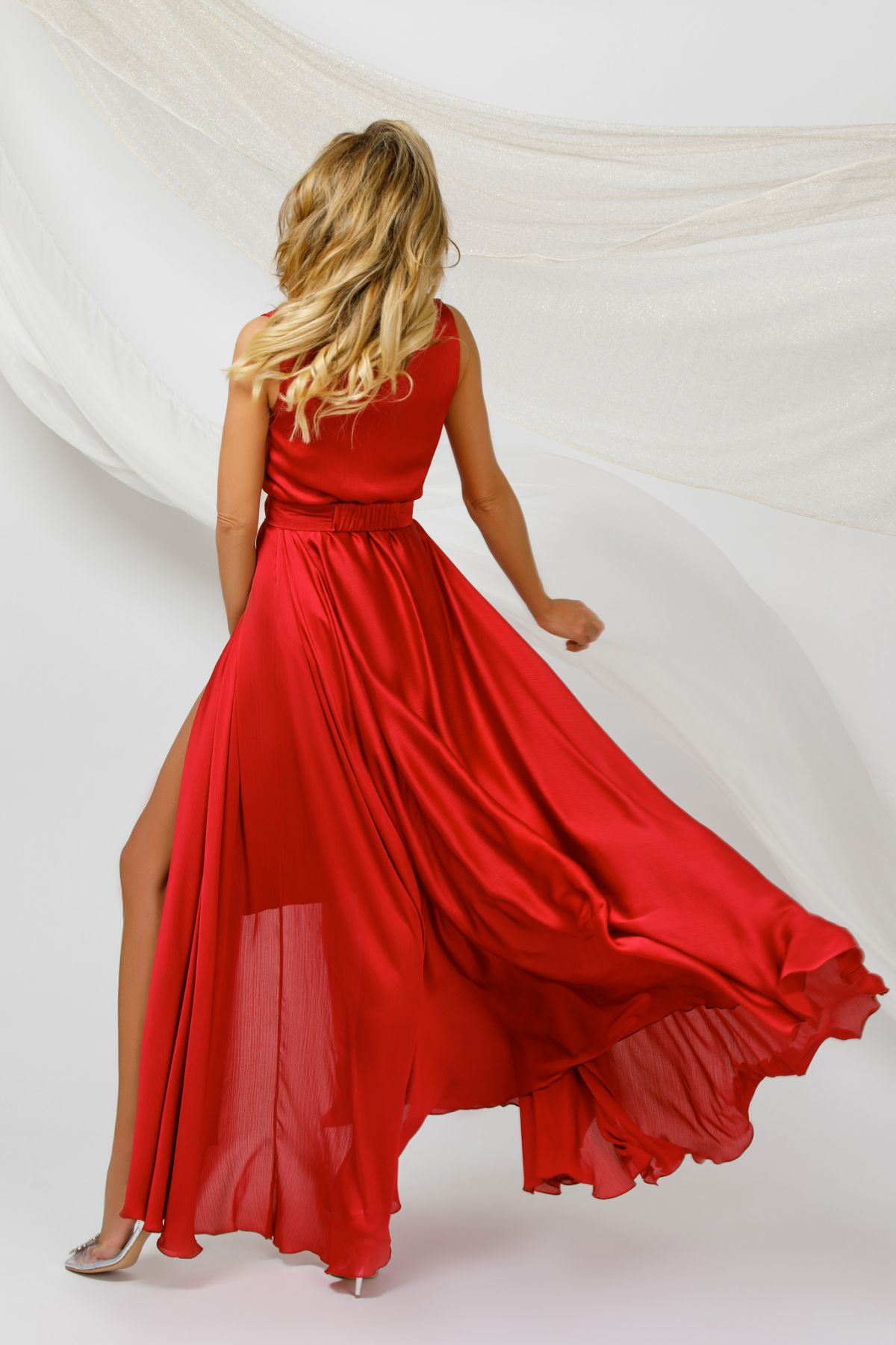 Rochie de seara satinata Pretty Girl rosie eleganta cu funda pretioasa ; Rochie lunga de ocazie petrecuta ; Decolteu petrecut în V ; Fara mâneca ; Talie elastica ; Cordon detasabil cu funda supradimensionata si accesoriu din cristale ; Croiala în clos ; Țesatura: voal usor satinat ; Dublura midi satinata ; Închidere în talie cu doi nasturi ; Culoare: rosu ; Lungime produs: 150 cm ; Compozitie: 100% poliester; 98% poliester 2% elastan ; Produs fabricat în România. ; * Echipa InPuff face toate eforturile in a prezenta cat mai bine culorile produselor prezentate pe site insa culorile pot diferi de situatia reala si pot varia în functie de setarile monitorului/dispozitivului dvs!