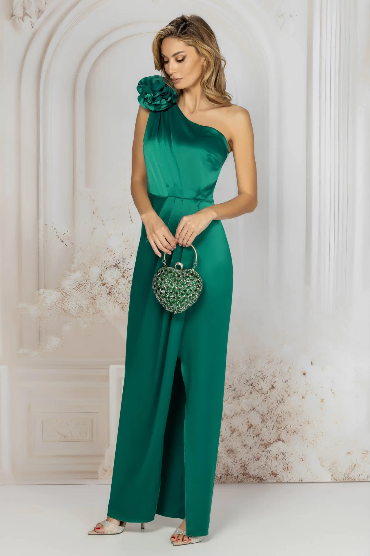 Rochie de seara verde lunga petrecuta cu umar gol si floare 3D- Pretty Girl ; Rochie lunga din tafta subtire ; Decolteu diagonal cu umarul gol ; Fusta petrecuta cu pliuri în talie ; Captusita cu tesatura satinata usor elastica ; Drapaj din umar spre talie ; Accesorizata pe umarul drept cu brosa detasabila floare maxi ; Închidere lateral stânga cu fermoar ascuns ; Țesatura: tafta subtire usor elastica cu luciu mat ; Compozitie: 98% poliester 2% elastan ; Culoare: verde ; Produs fabricat în România. ; * Echipa noastra face toate eforturile in a prezenta cat mai bine culorile produselor prezentate pe site insa culorile pot diferi de situatia reala si pot varia în functie de setarile monitorului/dispozitivului dvs!