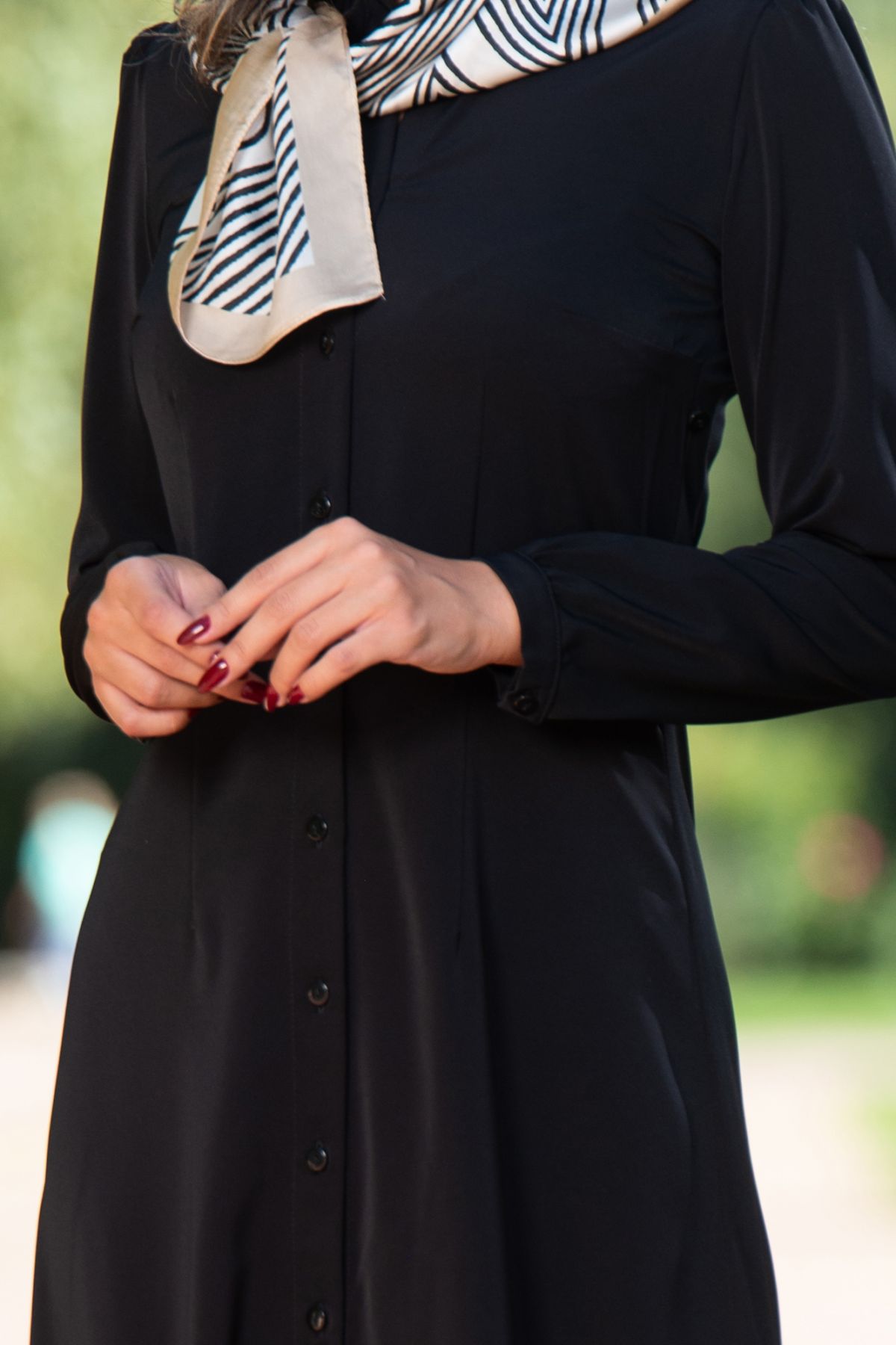Rochie de zi Effect tip camasa accesorizata cu esarfa eleganta ; Culoare: negru ; Croi lejer ; Maneci lungi cu mansete ; Inchidere frontala cu nasturi ; Cureaua nu este inclusa ; Esarfa cu figuri geometrice atasata de umar ; * Echipa InPuff face toate eforturile in a prezenta cat mai bine culorile produselor prezentate pe site insa culorile pot diferi de situatia reala si pot varia în functie de setarile monitorului/dispozitivului dvs!