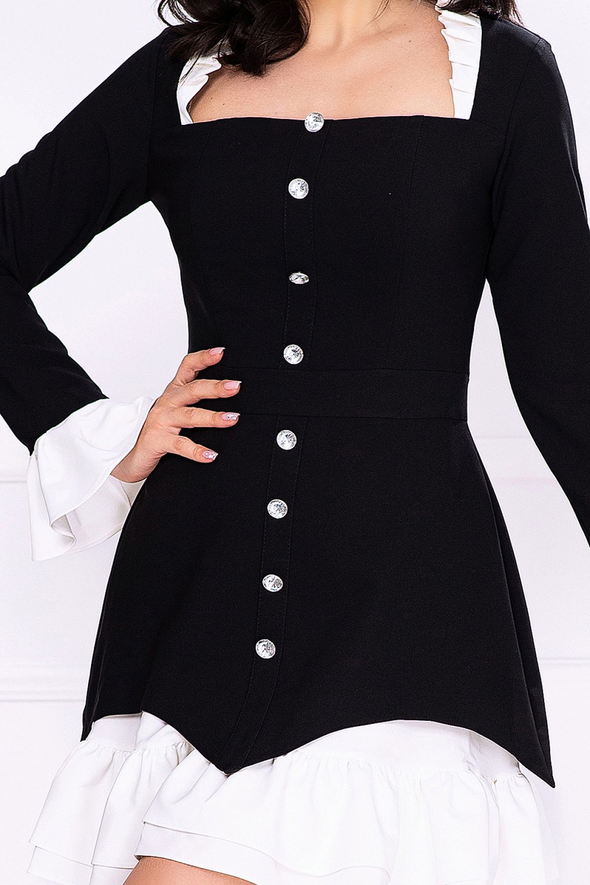 Comandă online o Rochie de zi eleganta neagra cu volane albe cu livrare rapidă prin curier sau easybox!