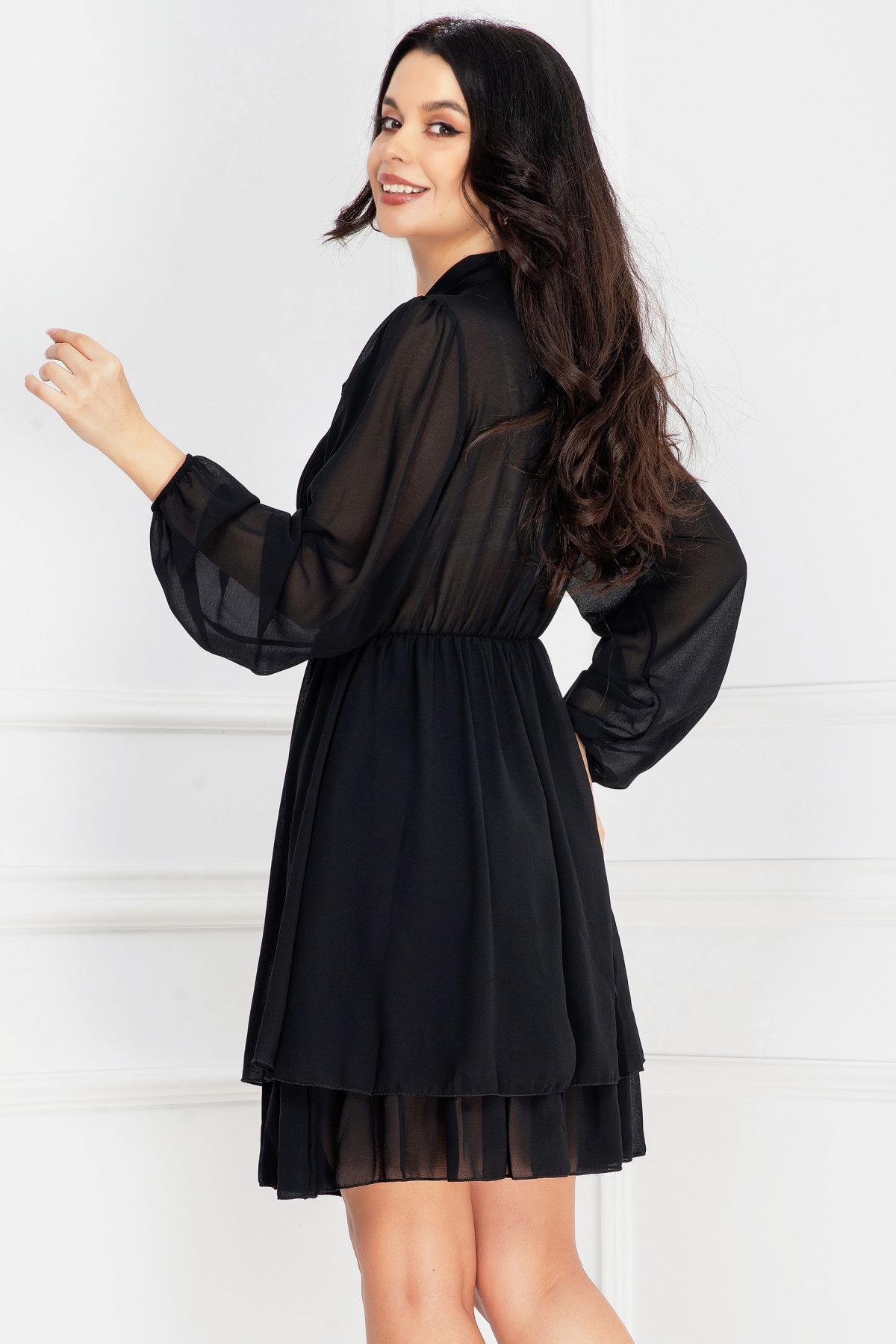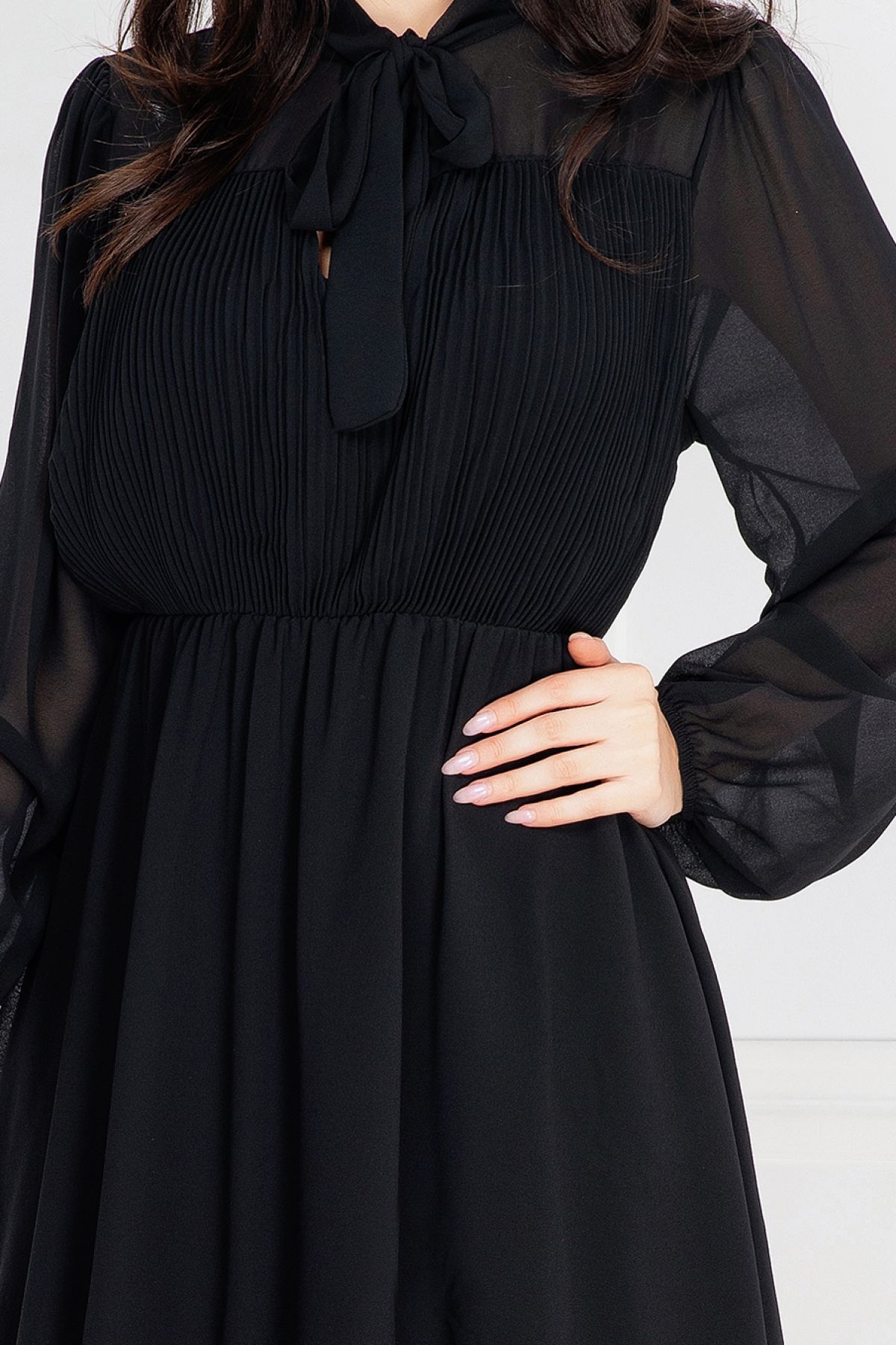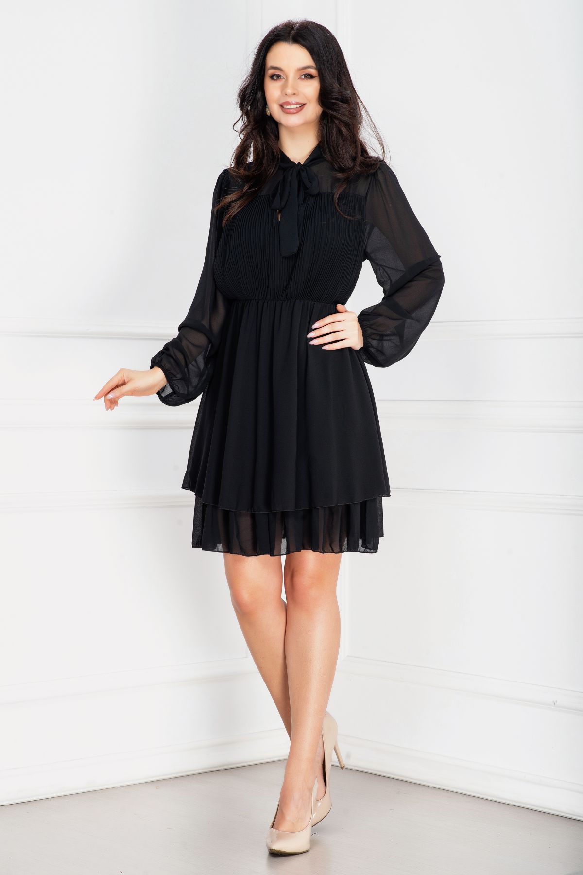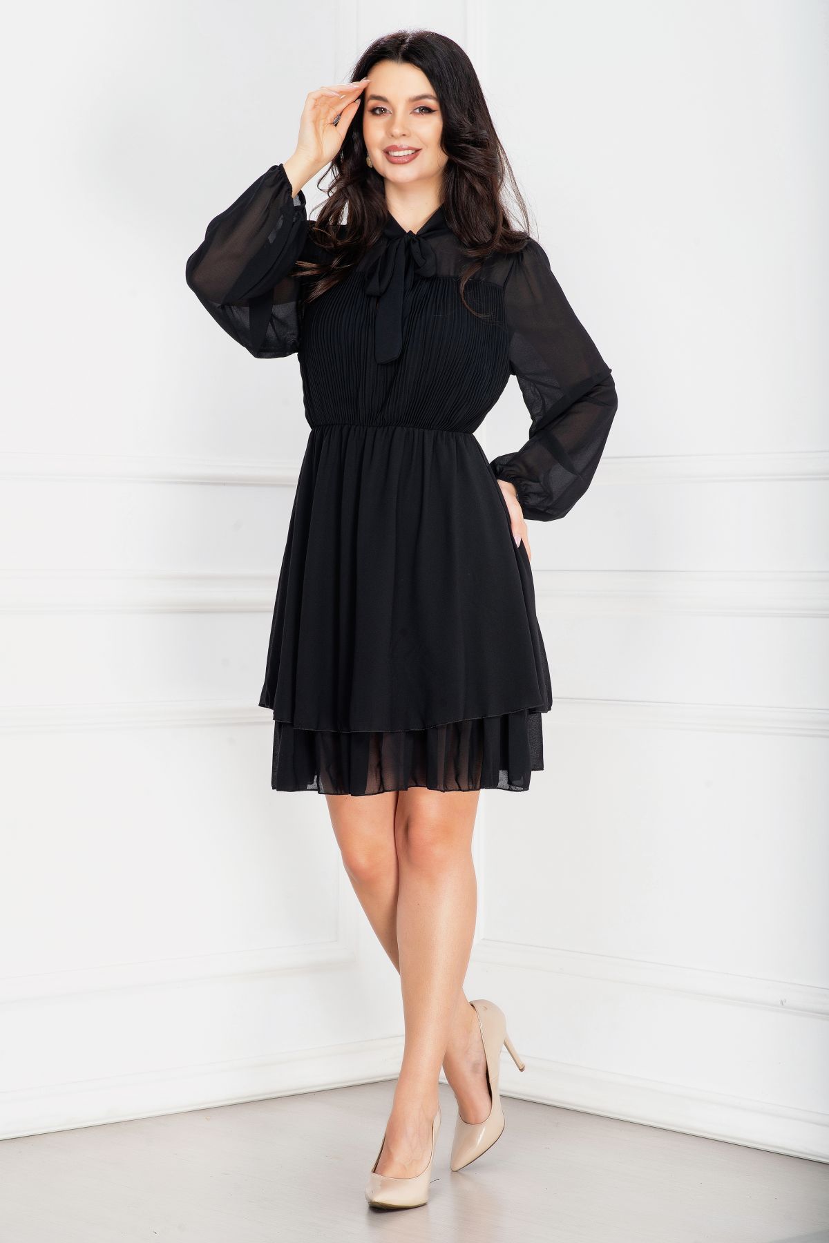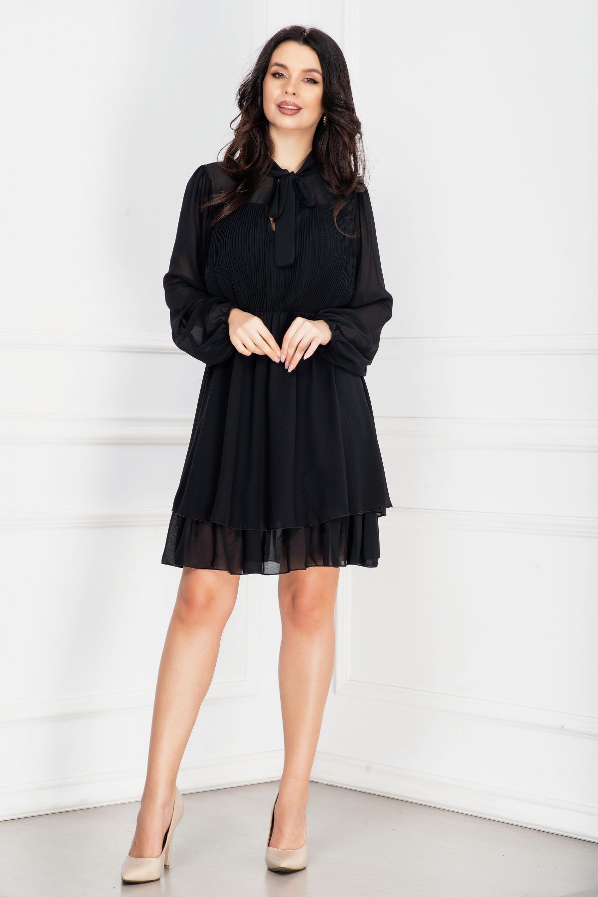 Rochie de zi neagra din voal cu pliseuri in zona bustului ; Culoare: negru ; Textura: voal ; Croi: clos ; Elastic in talie ; Maneci lungi din voal cu elastic la terminatie ; Pliseuri in zona bustului ; Prezinta dublura ; Volane in partea de jos ; Inchidere cu cordon la baza gatului ; Compozitie: 100% poliester ; * Echipa InPuff face toate eforturile in a prezenta cat mai bine culorile produselor prezentate pe site insa culorile pot diferi de situatia reala si pot varia în functie de setarile monitorului/dispozitivului dvs!