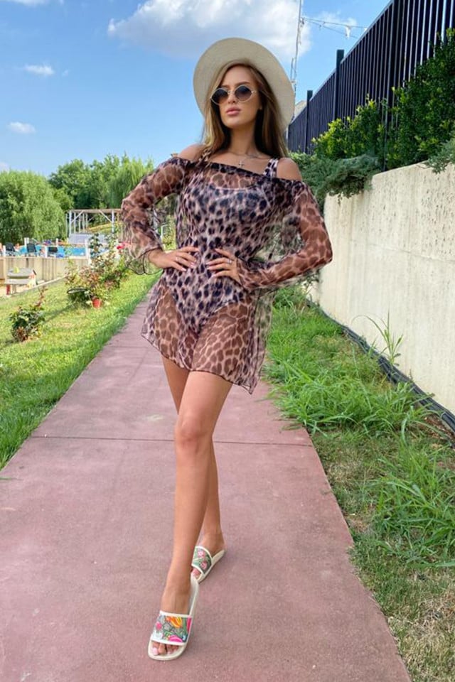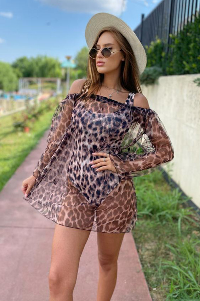 Comandă online o Rochie din plasa Floridas, cu maneca lunga si croiala lejera, Leopard, Marime universala S/M cu livrare rapidă prin curier sau easybox!