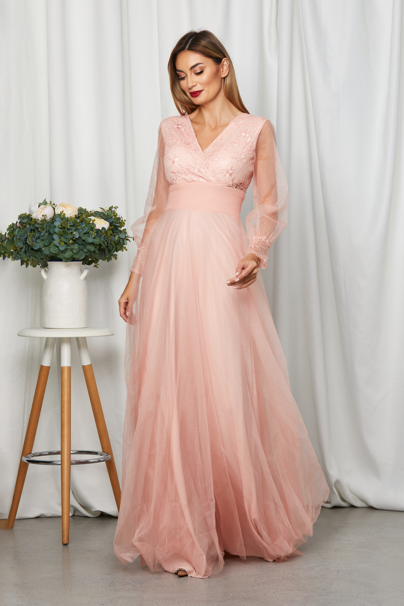 Rochie de ocazie peach lunga, accesorizata cu broderie si paiete, perfecta pentru evenimentele speciale la care doresti sa participi si sa ai o tinuta uimitoare. Modelul deosebit de elegant va face din aparitia ta, una diafana, plina de rafinament. material usor elastic fermoar ascuns la spate maneci lungi bust buretat decolteu in V petrecut jupon licra accesorizata cu broderie si paiete Dimensiuni disponibile: S, M, L, XL, XXL, 3XL, 4XL, 5XL