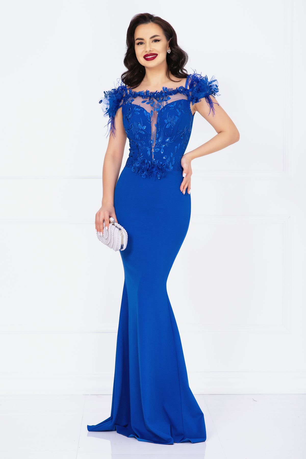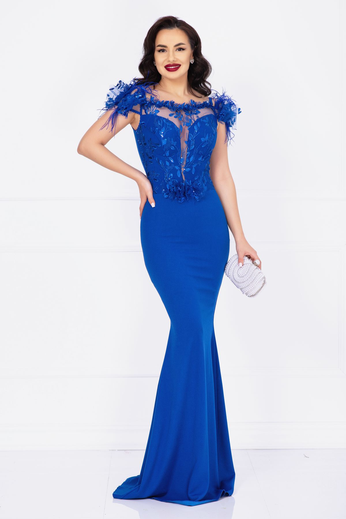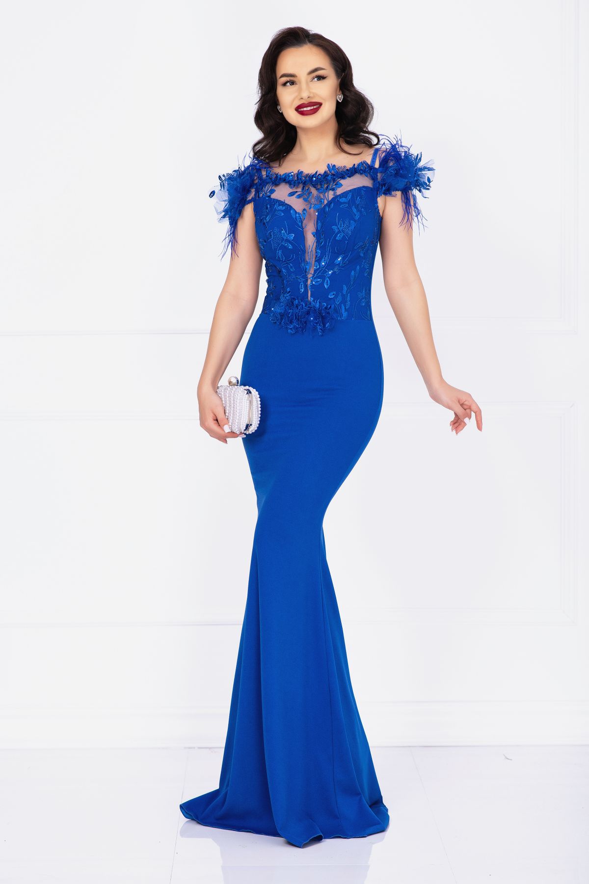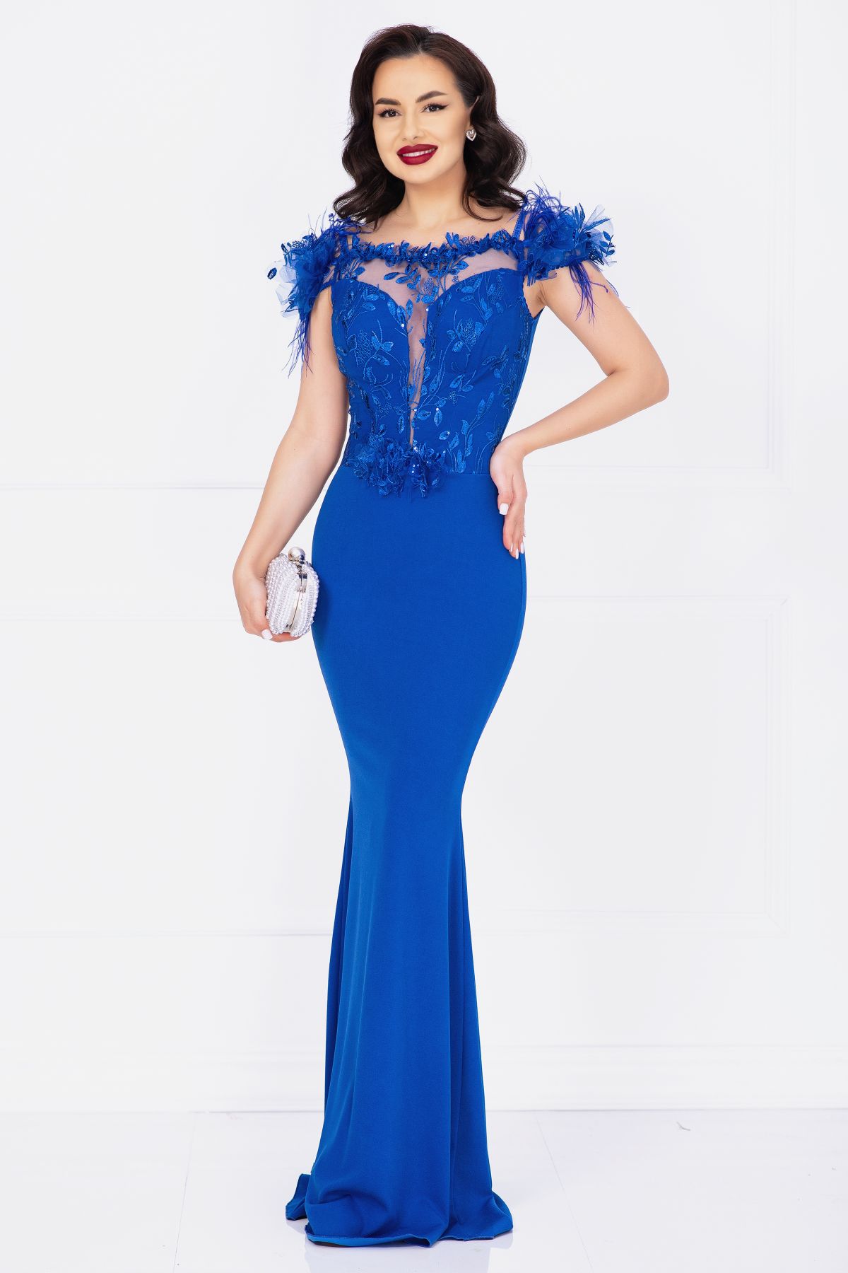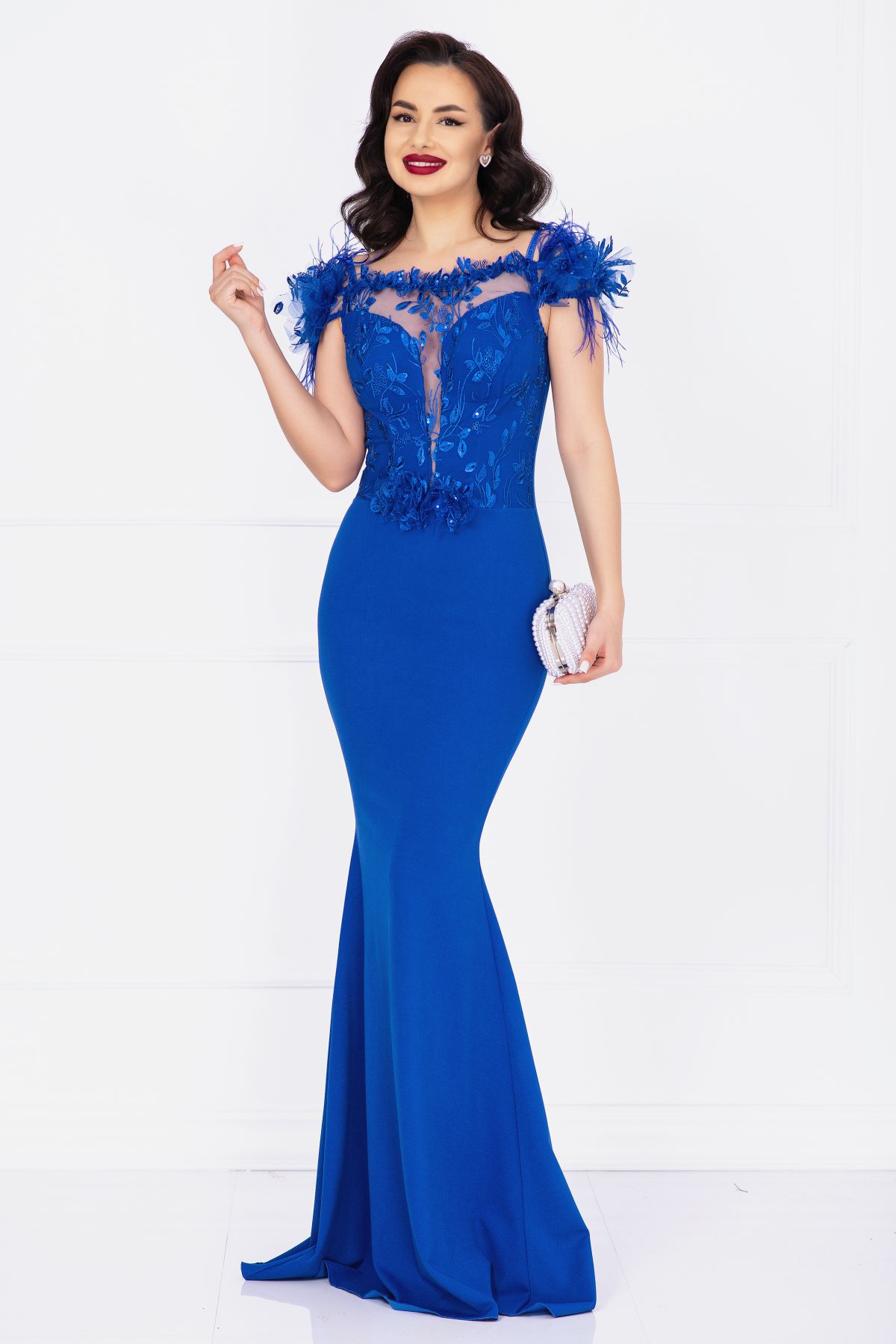 Rochie eleganta Noely albastru royal cu broderie pretioasa si fulgi ; Culoare: albastru royal ; Croi: cambrat ; Textura: bistrech broderie paiete fulgi ; Material usor elastic ; Umeri cazuti decorati cu fulgi ; Decolteu patrat ; Cupe buretate cu push-up ; Partea de sus a rochiei decorata cu broderie paiete si flori 3d ; Inchidere cu fermoar la spate ; Fara dublura ; Talie marcata cu floare 3D ; Compozitie: 95% poliester 5% elastan ;li style="color:#ff0000">Croi mic ; Fabricat in Romania ; * Echipa noastra face toate eforturile in a prezenta cat mai bine culorile produselor prezentate pe site insa culorile pot diferi de situatia reala si pot varia în functie de setarile monitorului/dispozitivului dvs!