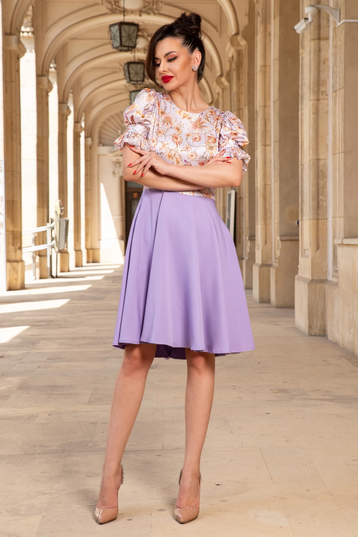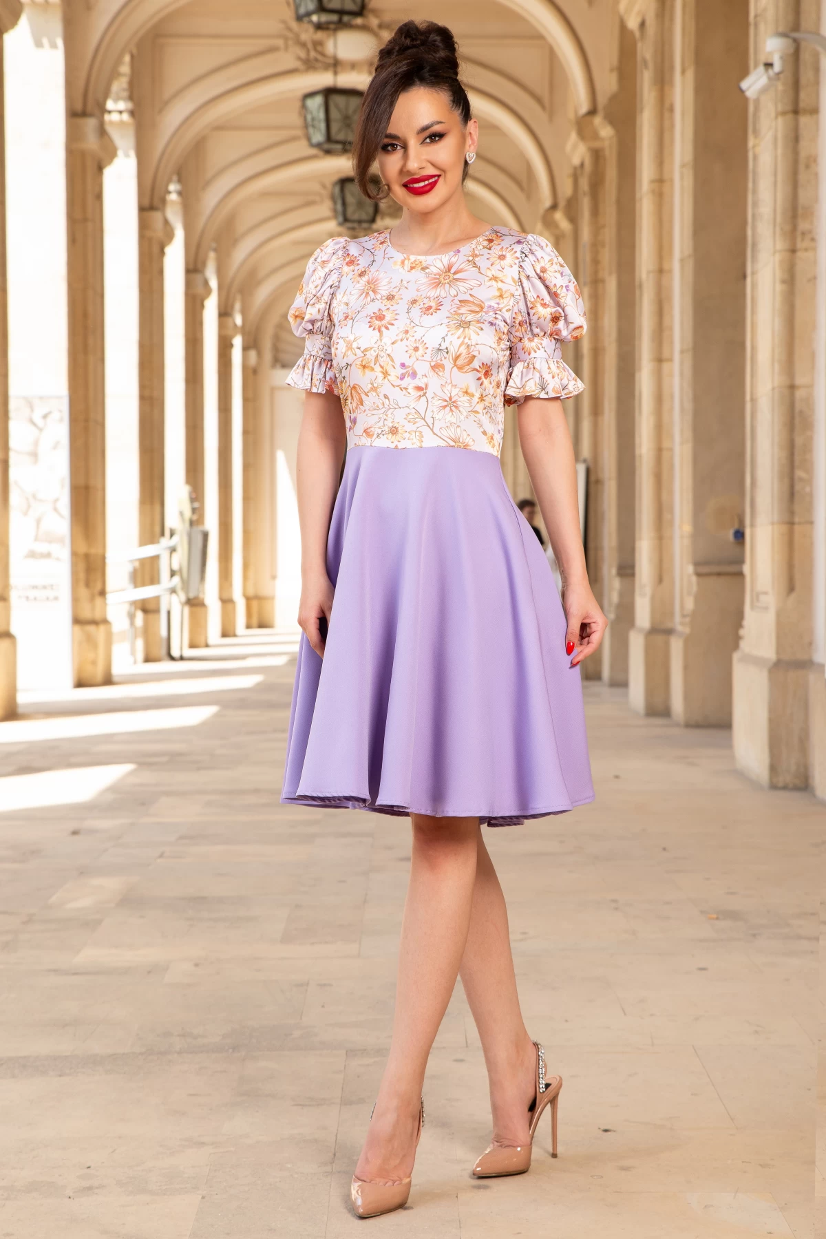 Rochie InPuff de zi in clos lavanda cu maneci bufante si flori delicate ; Culoare: lavanda ; Croi: clos ; Decolteu rotund ; Maneci scurte bufante ; Cret la umeri si volanas la terminatia manecii ; Material fin tip matase in partea de sus ; Stofa subtire in partea de jos ; Inchidere cu fermoar la spate ; Imprimeu floral delicat in partea de sus ; Buzunare laterale functionale ; Compozitie: 100% poliester ; Fabricat in Romania ; * Echipa InPuff face toate eforturile in a prezenta cat mai bine culorile produselor prezentate pe site insa culorile pot diferi de situatia reala si pot varia în functie de setarile monitorului/dispozitivului dvs!