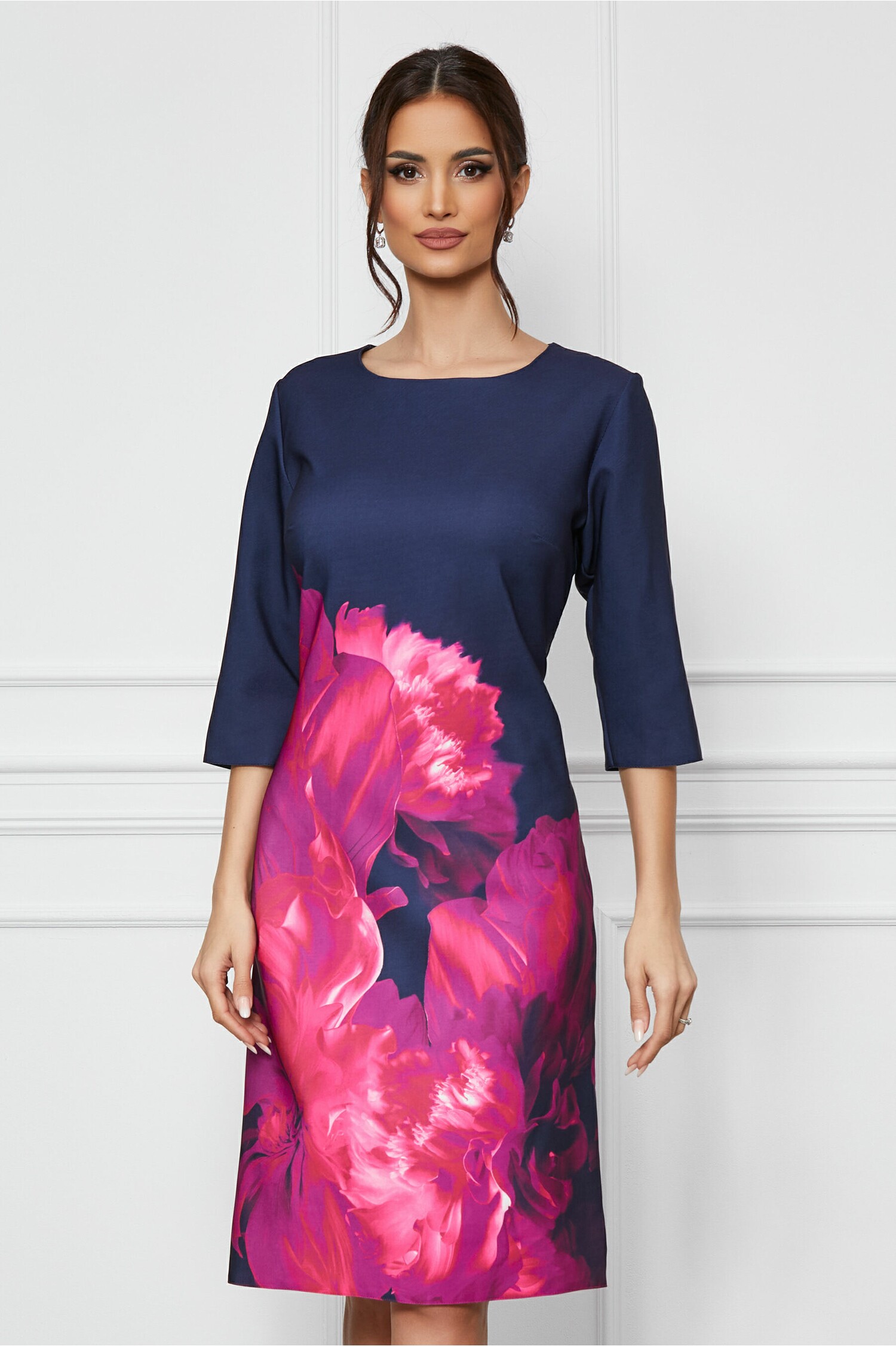 Rochie de zi cu imprimeu. Are decolteu rotund, maneci trei sfeturi si croi cambrat. Rochie de zi Decolteu rotund Maneci trei sferturi Croi cambrat Fara captuseala Se inchide cu fermoar la spate Material: Bumbac Compozitie: 95% Bumbac, 5% Elastan Instructiuni de intretinere: *Va rugam verificati eticheta produsului inainte de curatare! *Pozitia tiparului imprimeului poate fi diferita datorita taierii. *Modelul are inaltimea de 174 cm. *Va rugam sa retineti ca o usoara discrepanta de culoare ar trebui sa fie acceptabila datorita luminii si luminozitatii ecranului. *Va rugam verificati ghidul de marimi, in cm, pentru a alege corect marimea.