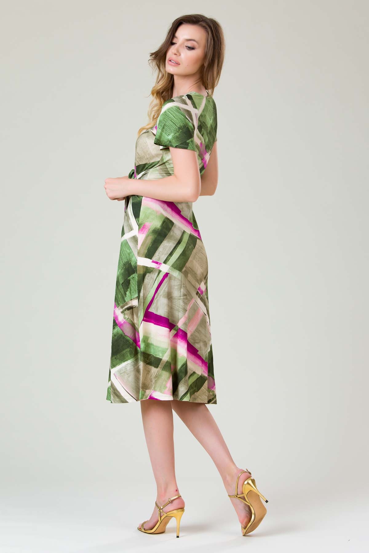 Rochie Serenna din jersey imprimat, croiala lejera cu cordon legat in fata, decolteu anchior si maneca raglan.