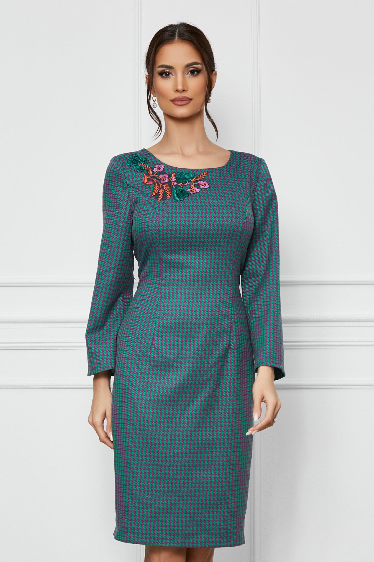 Comandă o Rochie Mara verde cu imprimeu pepit mov cu LIVRARE și RETUR GRATUIT!