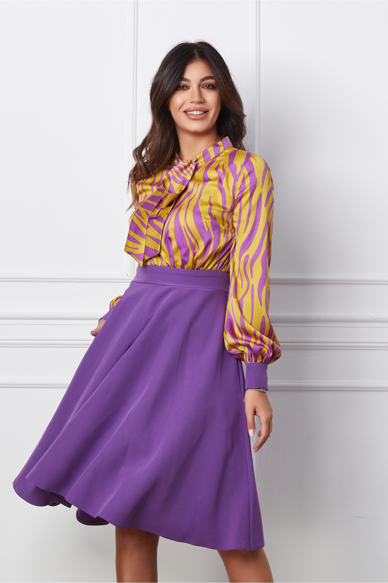 Comandă o Rochie MBG mov cu imprimeu verde lime la bust cu LIVRARE și RETUR GRATUIT!