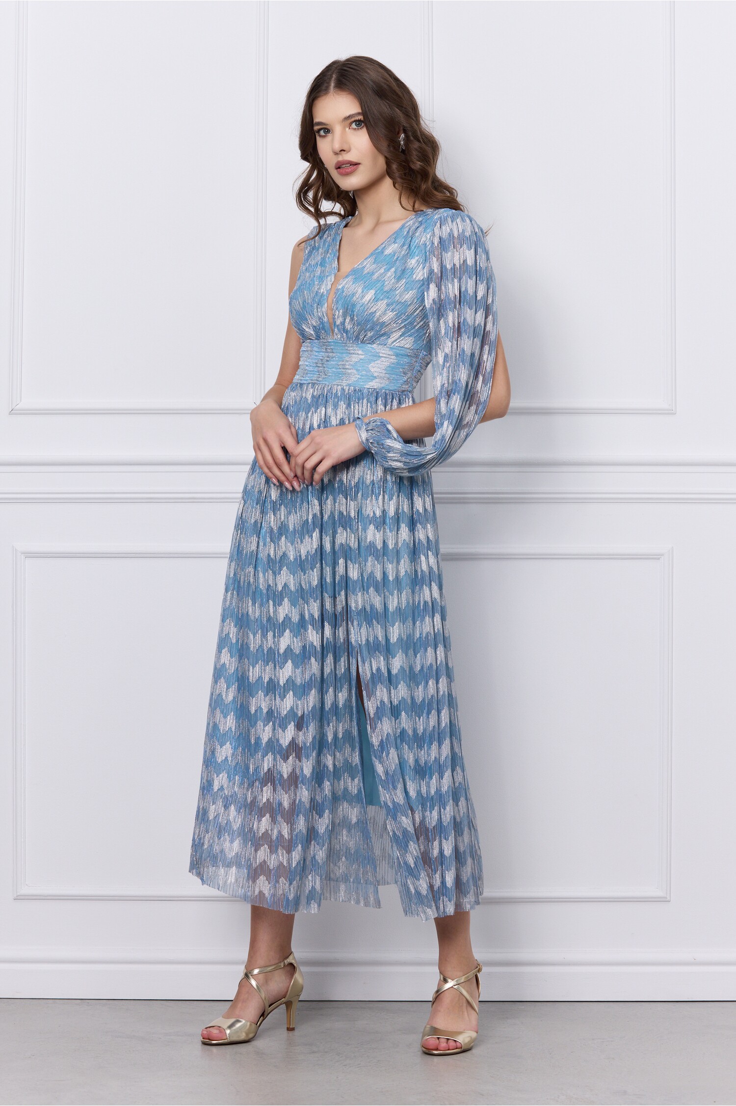 Rochie eleganta cu decolteu in v accesorizat cu tulle nude si o maneca decupata. Are decolteu in v, croi clos, maneca sparta. Rochie eleganta Decolteu in v Croi clos Are captuseala Se inchide cu fermoar la spate Material: tulle Compozitie: 95% Poliester, 5% Spandex *Va rugam verificati eticheta produsului inainte de curatare! *Pozitia tiparului imprimeului poate fi diferita datorita taierii. *Modelul are inaltimea de 178 cm. *Va rugam sa retineti ca o usoara discrepanta de culoare ar trebui sa fie acceptabila datorita luminii si luminozitatii ecranului. *Va rugam verificati ghidul de marimi, in cm, pentru a alege corect marimea.