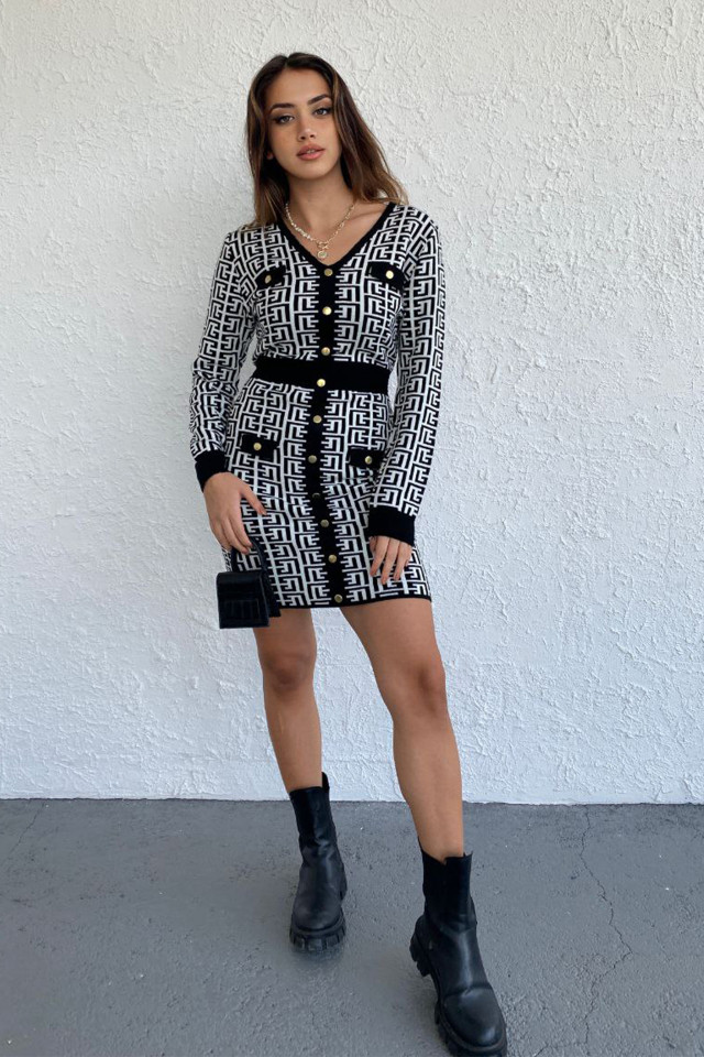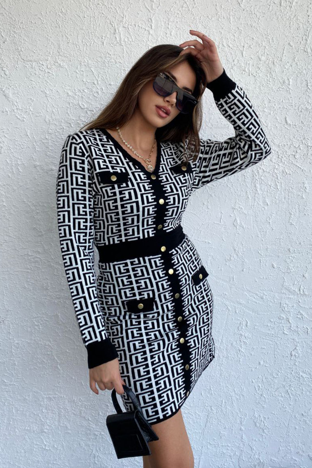 Rochia office Daliana, mini, tip creion, buzunare decorative si accesorii metalice Rochia este cea care exprima feminitate si eleganta, este unealta excelenta in exprimarea stilului individual. Iar cand vorbim despre vestimentatia de serviciu si prima impresie este greu de schimbat, atunci trebuie sa alocam maxim de interes in cautarea rochiei „office” care sa exprime o personalitate cu stil si sa emane respect. In acea alegere cu stil se incadreaza rochia Daliana, cu o croiala tip creion ce te va ajuta sa iti evidentiezi o silueta de invidiat si decolteu in V. Materialul se largeste si se muleaza pe silueta punand in valoare formele feminine. Si pentru ca totul este la superlativ, aceasta rochie este prezentata in cele doua culori de baza folosite frecvent in crearea articolelor vestimentare cu staif. Produs ce merita prin calitate si pret echilibrat, sa il ai in garderoba! Caracteristici: – croiala bodycon, mini – nasturi metalici decorativi – decolteu in V – patru clapete decorative