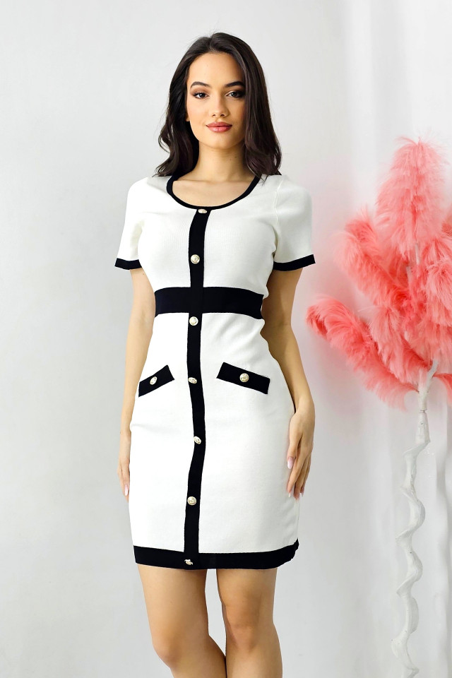 Comandă online o Rochie office Diana, tricot, cu buzunare decorative si maneca scurta, Alb, Marime S/M cu livrare rapidă prin curier sau easybox!